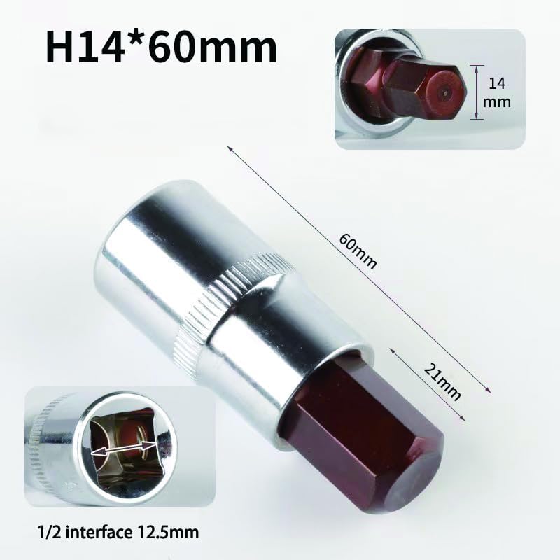 1/2 hexagon socket batch head setSize: H7, H8, H12 , H14 Materials: S2 alloy steelType of shank: 1/2 InchLength: 100mm or 60mm Package Included: 1pcs