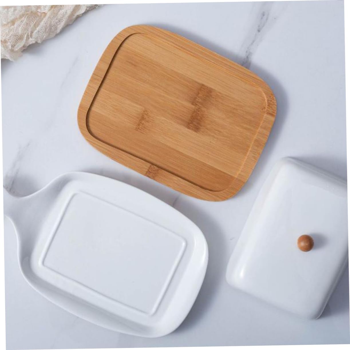 1Pc Elegant Butter Plate with Lid Stylish Household Dish with Handle for Use Easy to Clean Microwave and Dishwasher Safe White
