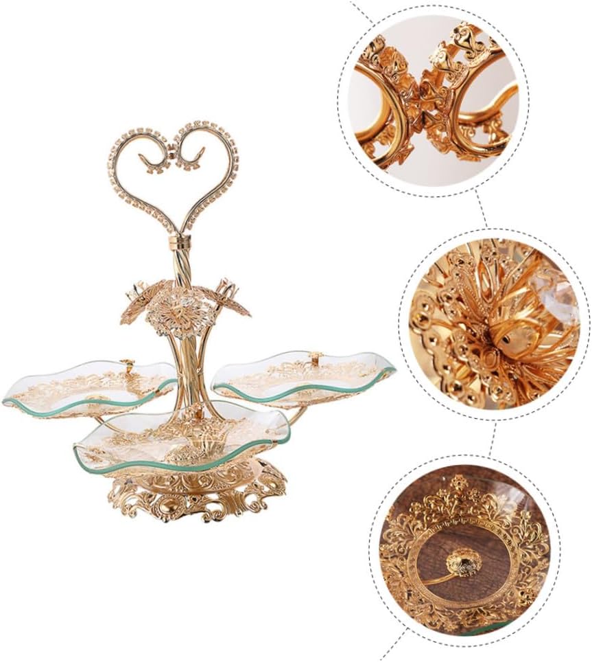 Package Include 1 x Fruit Tray Features -Material: Hot-melt glass Creative Fruit Stand -Size: 40.00X34.50X18.00cm/15.72X13.56X7.07inch serving platter -Color: Golden dessert plate -Reusable and , easy to clean and wash, long serving life creative tabletop decoration fruit rack. -Perfect for entertaining your guests on the birthday, wedding, Christmas party, family gathering, or just daily use Layered Fruit -Multifunctional and versatile, can be used as a snack tray, appetizer plate, cupcake tray, home decoration, housewarming present, display stand, etc fruit holder for kitchen countertop. -European style, simple and elegant, suitable for wedding, banquet, parties, and so on serving dish. -It also can be used as a delicate ornament on desktop or dinner table, beautiful and appetizer serving platter.Goods Descriptionfruit holder for kitchen countertop This product is a fruit tray, made of premium glass material, and .Decorative Snack Stand A perfect housewarming friends and co-workers, and they will like it.fruit stands for kitchen counter You can store your all kinds of food, such as cake, candy, snacks, chocolate, dessert, etc