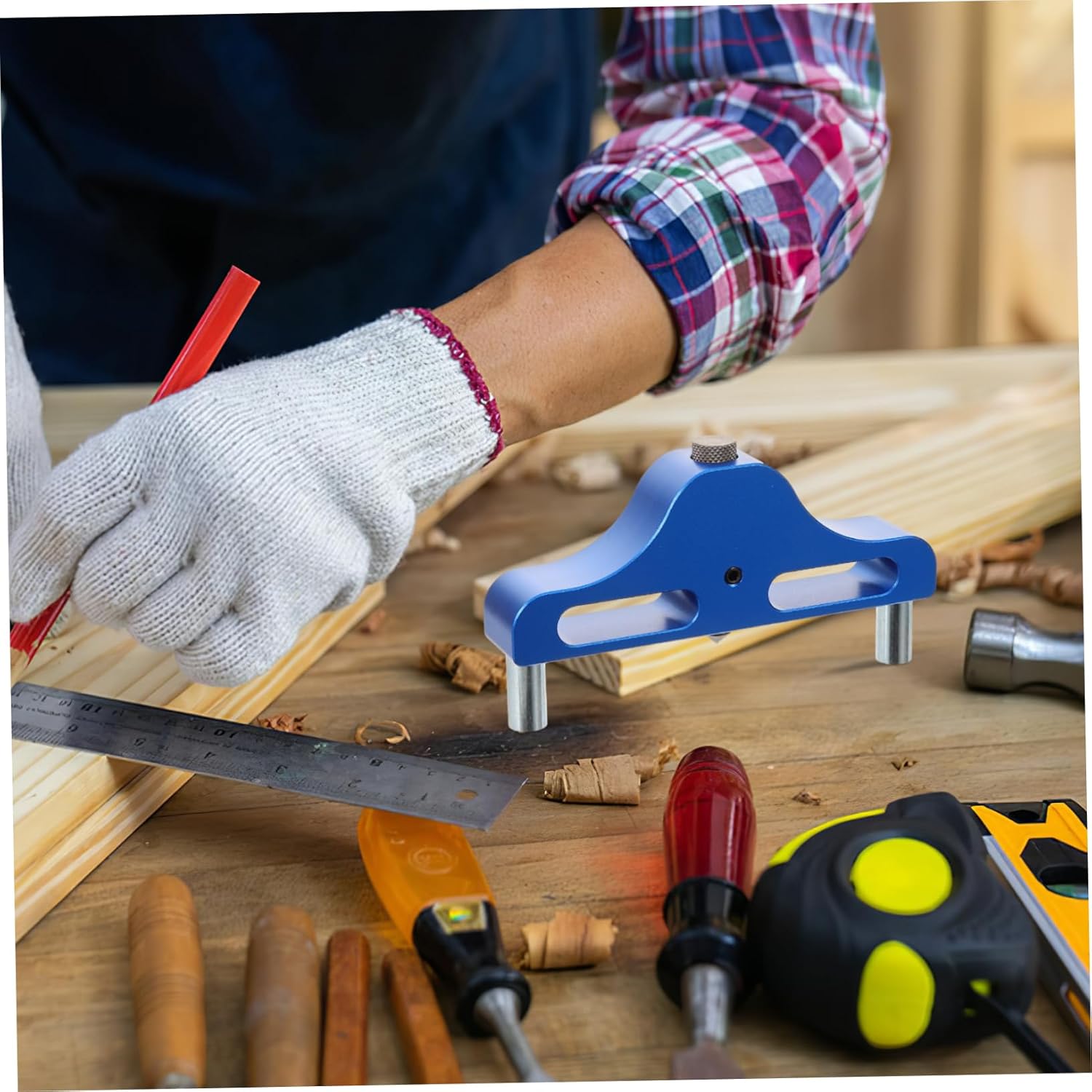 Package List 1 x wire gauge Characteristics - Size: 12.00X6.50X2.10cm/4.72X2.55X0.83inch Marker Tool. - Color: Random Finder - Material: Aluminum alloy Wire Gauge. - The bottom is magnetic: The center line locator can be attached to the iron surface, and the pencil can also be inserted into the hole in the foot Marking Tool. - The pencil is not easy to be lost and is convenient for storage.(Pen is not included) Woodworking Accessories. - Professional and practical design with beautiful appearance, easy to carry and use Center Scriber. - The multi-function scribe can mark the center of the sheet with the maximum thickness of 95mm Marker. - Adopted from aluminum alloy material, it is durable and use Woodworking Parts.Goods InformationWoodworking Finder Suitable for plate grooving, pin joints, assembly work, making reference lines for drilling holes.Woodworking Parts This is a multi-functional scriber, made of aluminum alloy material, durable and easy to use, which can mark the center of the plate with a thickness of 95 mm, move the scribe to draw