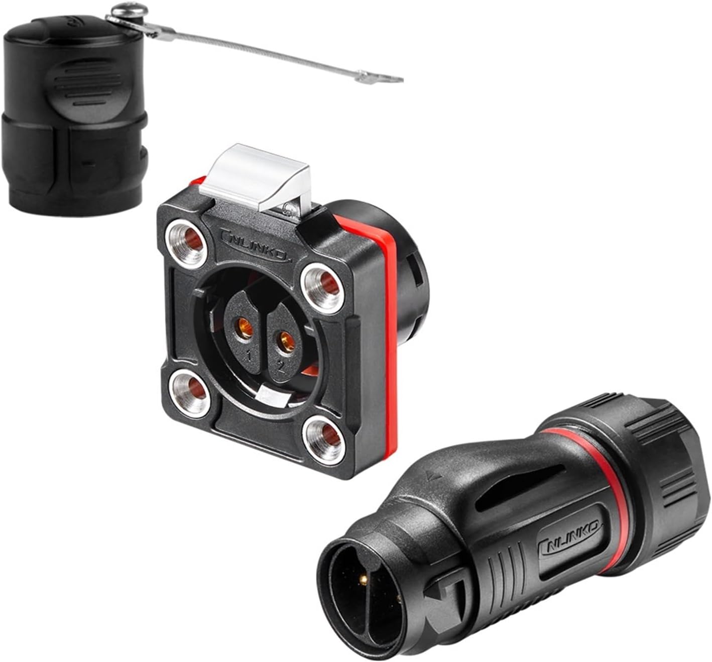 Electrical ConnectorBD20 Waterproof IP68 Screw-in Power Connector 2pin 3pin Fast Locking Electrical Connection for DIY & Professional UseFeatures Solderless Connection The solderless feature simplifies the connection process saving time and reducing the risk of errorsScrewin DesignIts screwin design provides a secure and stable connection, ideal for both DIY and professional applications.Waterproof IP68 RatingThe BD20 connector boasts a waterproof IP68 rating, ensuring reliable electrical connections in harsh environments.2pin/3pin OptionsAvailable in 2pin and 3pin configurations, this connector offers flexibility for various electrical needs.Customizable VoltageWith customizable voltage options, this connector can be tailored to meet specific electrical requirements.==========Hign-concerned Chemical : NoneModel Number : BD-20 Screw Locking ConnectorVoltage : Origin : Mainland Certification : ,UL,weeeColor : BlackContact resistance(Max.) : 1m omegaApproved : TUV UL Wire size : 2.5~4.0mm²/ 14-12AWGOperating voltage (AC.V.rms) : 500VProtection level : IP68Current rating : 20AInsulation resistance(Min.) : 500m omegaWorking temperature : -25~+85Withstanding voltage (AC.V)1 minute : 2000VContact diameter : O.D 2.7*2/3Diameter range : O.D 10.0~12.0mmAssembly style : ScrewingShell&insulated parts : PBTContact pin : Brass with gold-platedHardware metal : Zinc alloyPins : 2/3 PinLife cycle(Min.) : 500 times