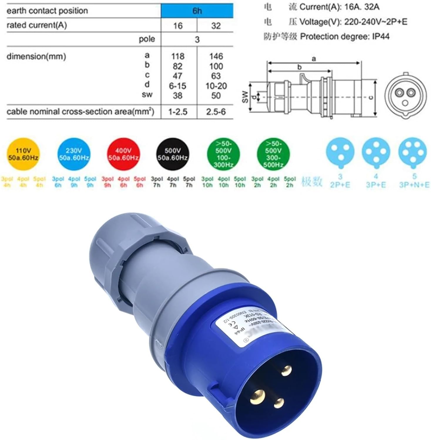 plugsIC Sockets & Plugs1pcs Industrial Socket Connector Electrical Plugs IP44 Waterproof 3 Phase Power 3Pin 16A 2PPE 220u2011250V==========Material : PlasticInstallation Type : Wall EmbeddedIs Smart Device : NoExtension Cable Length : NoneShape : IrregularModel Number : RS-213K/RS-013KRated Current : 16AGrounding : Standard GroundingApplication : IndustrialProtection class : IP 44Origin : Certification :