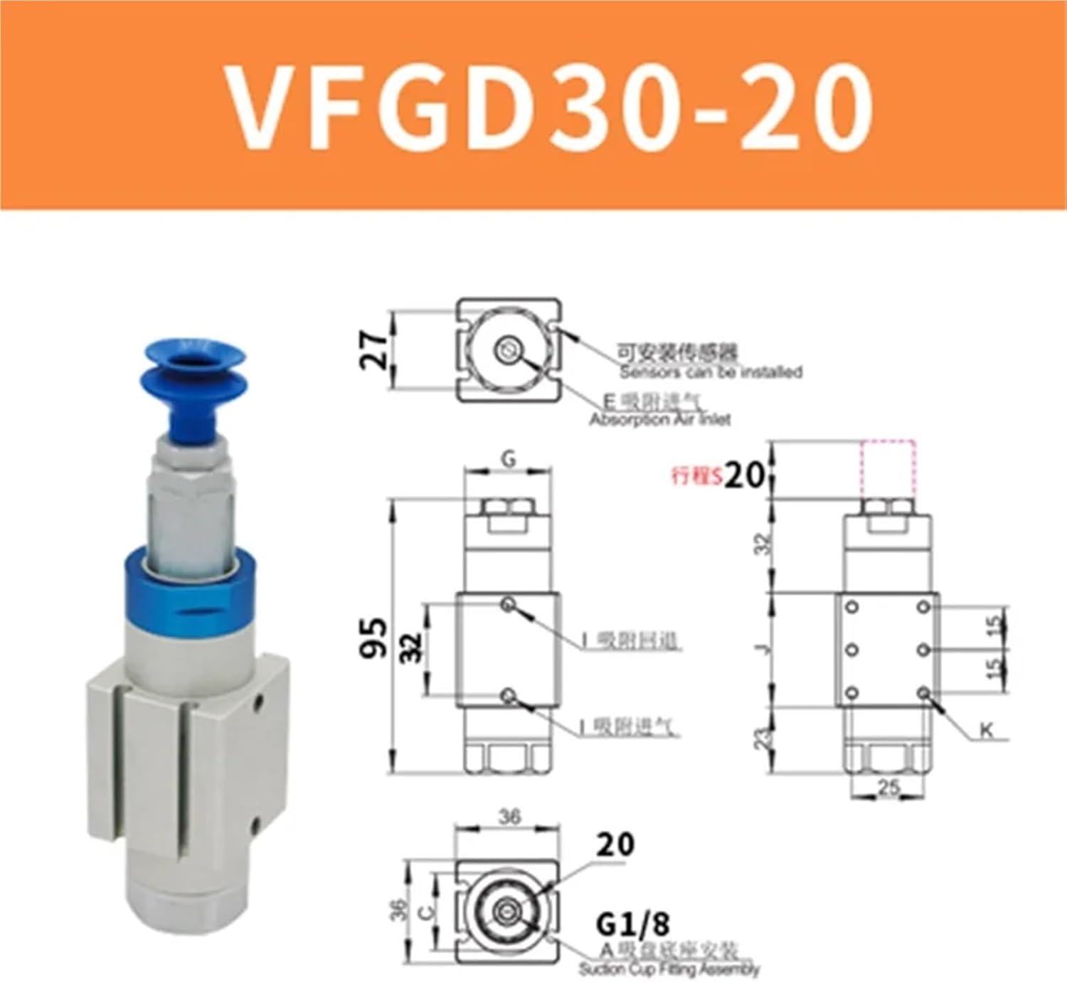 VFG20 Series Suction Cup Pneumatic Cylinder Metal Fittings Telescopic Tube Type With Stroke Mechanical Arm Air Cylinder==========Hign-concerned Chemical : NoneType : ActuatorModel Number : Rubber sucker holderOrigin : Mainland