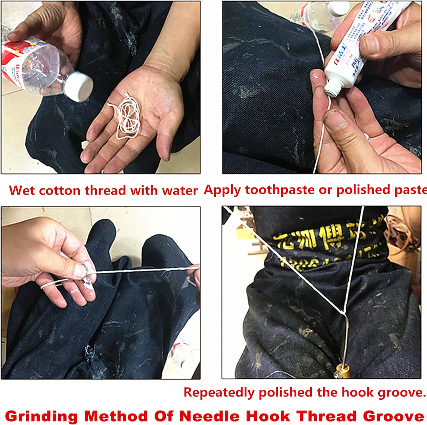 1pc Round Blades Adjustable Universal Hardwood Clip Handl.Total Length:120mm (4.9"),Connector Diameter:18mm (0.7").Handle Maximum Diameter:25mm (1") Chuck Mandrel Opening Size:0-3mm( 0"- 0.12" ) 16Kinds Needles: 1# - Stainless Steel PointedTip Straight Hook Needle Total Length: 75mm (2.95") , Needle Width:2.2mm (0.09"), Needle Thickness:1.5mm (0.06"), Needle Shaft Diameter:2.22mm (0.09"). Handle Joint Diameter: 2.22mm(0.09"). 2# - Stainless Steel Pointed TipLarge Arc Hook Needle Total Length: 70mm (2.8"). 3#-1 Steel Pointed Tip Straight Hook Needle Total Length: 80mm (3.15"). 3#-2Total Length: 78mm (3.07"). 4#-1- Pointed Tip Large Arc Hook Needle Total Length: 80mm (3.15") , Needle Width:2.3mm (0.09"), Needle Thickness:1.3mm (0.05"), Needle Shaft Diameter:2.47mm (0.1"). Handle Joint Diameter: 2.95mm(0.12"). 4# -2 Total Length: 78mm (3.07") , Needle Width:2.15mm (0.08"), Needle Thickness:1.15mm (0.05"), Needle Shaft Diameter:2.2mm (0.09"). Handle Joint Diameter: 2.6mm(0.1"). 5# -1 - Flat Arc Tip Large Arc Hook Needle Total Length: 105mm (4.13") , Needle Width:4mm (0.16"), Needle Thickness:1.5mm (0.06"), Needle Shaft Diameter:3.25mm (0.13"). 5# -2 -Flat Pointed Tip Small Arc Hook Needle Total Length:110mm (4.33") , Needle Width:4.6mm (0.18"), Needle Thickness:1.2mm (0.06"), Needle Shaft Diameter:3.5mm (0.14"). 5# -3- Flat Arc Tip Large Arc Hook Needle 6# - Pointed Small Arc Head Hook Needle 7# - Flat Arc Tip Small Arc Hook Needle 8# - Flat Arc Tip Small Arc Needle No Hook 9# Outer Thread Needle - Steel Oblique Flat Tip Straight Hook Needle 10# Outer Thread Needle - Steel Pointed Tip Straight Hook Needle 11# Outer Thread Needle - Steel Pointed Tip Straight Round Needle 12# Outer Thread Needle -Steel Perforated Pointed Straight Needles 3pcs Dedicated Professional Curved Needle For Sole Sewing.Needle Thickness: 1.3mm(0.05") Curved Arc: 90 degrees Distance From Needle head To Needle Hole: 47mm(1.85") Needle Hole Width: 1.1mm(0.04") Needle Hole Length: 4mm(0.16")