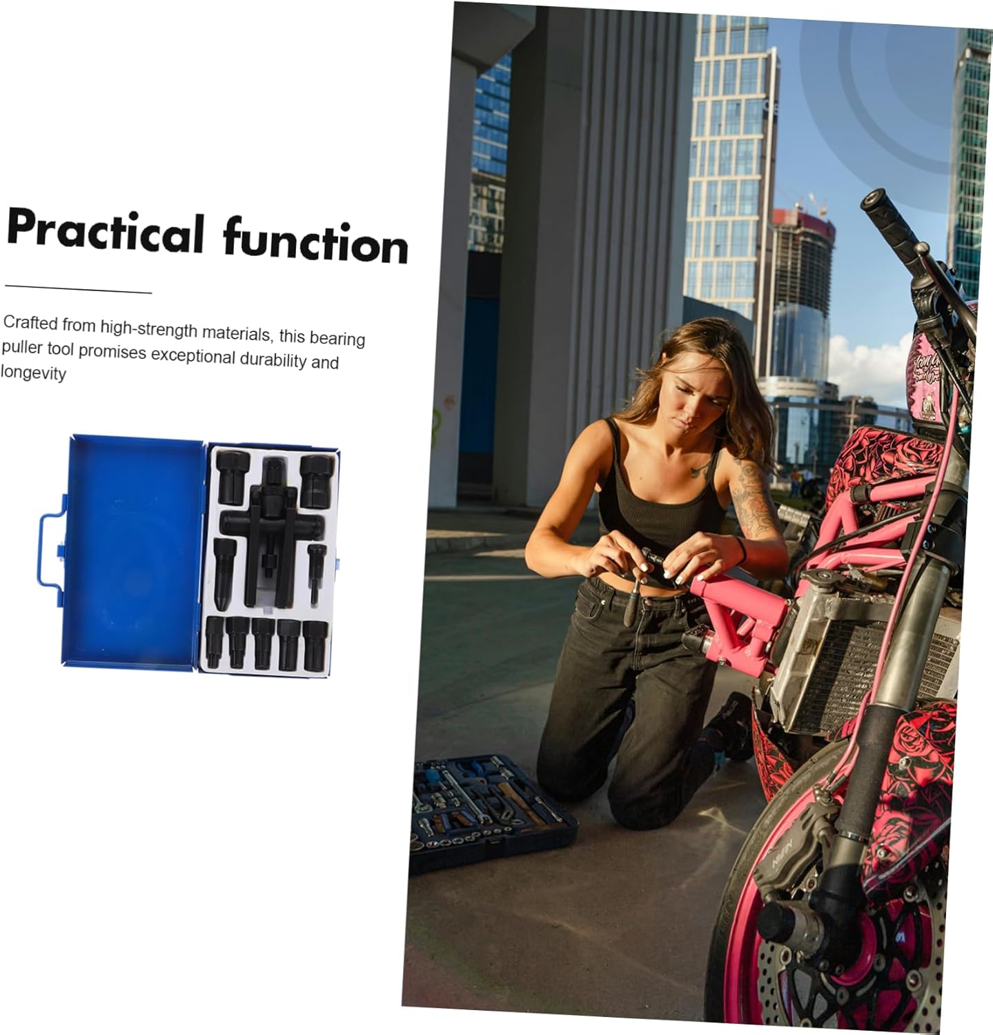 Package List 10 x bearing removal tools Features -Color:Blue bearing pullers -Material:Alloy bearing disassembly puller -Size:22.00X15.00X4.50cm/8.65X5.89X1.77in bearing removal tool -This steering wheel puller kit is designed for extensive usability, making it compatible with a wide range of motorcycle bearing types, ensuring versatility in various applications bearing separator. -It comes housed in a refined box, which is not only aesthetically pleasing but also makes it easy to carry and store, ensuring convenience and portability wheel bearing puller. -The motorcycle wheel bearing puller is designed for intuitive operation, making the bearing removal process and user-friendly, even for those with minimal experience pulley puller. -Featuring a twin-jaw configuration, it offers a firm grip on bearings, preventing any potential damage during the removal process pulley puller tool.Goods Informationinner bearing puller Our motorcycle tool kit includes a versatile bearing puller that fits a variety of motorcycle bearings.internal bearing disassembly puller tool The compact box packaging makes it easy to transport and store, keeping your workspace organized.small gear puller The two-jaw design provides a stable grip on the bearing, minimizing the risk of damage.bearing puller tool Constructed with durability in mind, this inner bearing puller is made from high-strength materials to ensure reliable performance.wheel bearing tools Its easy-to-use mechanism allows for bearing removal, making it an indispensable tool motorcycle owner