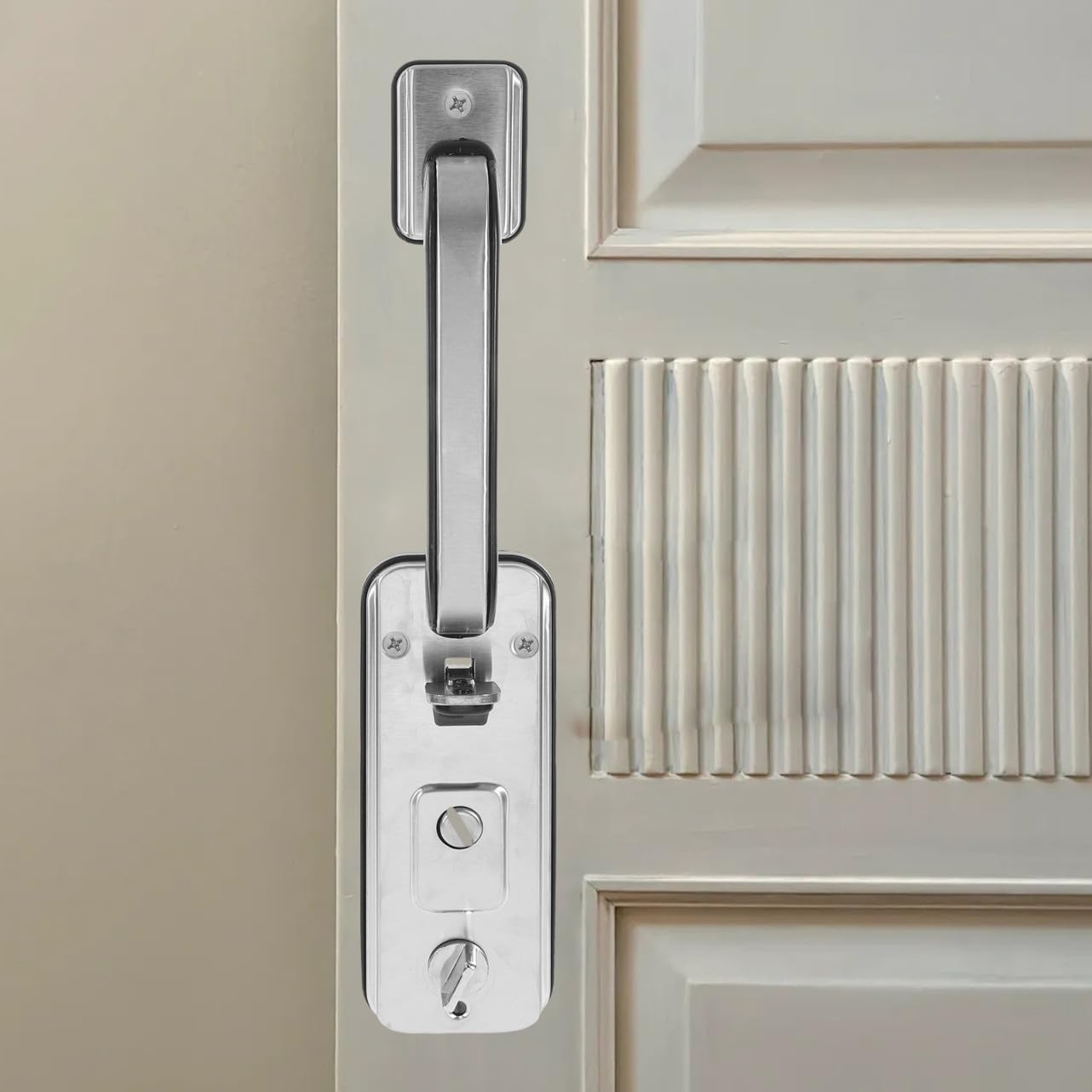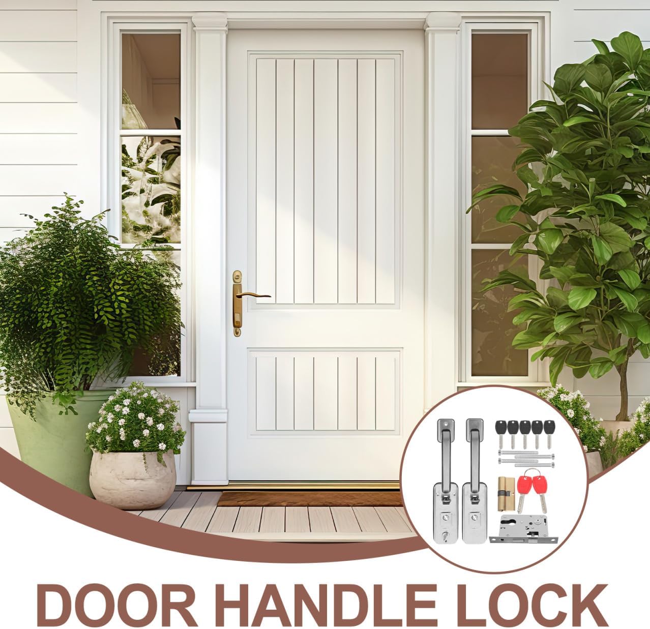 Package Include 2 handle 1 x lock cylinder 1 x small lock 2 x red keys 5 x black keys 4 x long screws 4 x small screws 1 x gasket Characteristics -Size:12.60X7.40X1.90cm/4.95X2.91X0.75in (lock) metal door lock -Material: crafted from stainless steel, this door lock is built to withstand daily use and harsh weather conditions, ensuring performance door security lock -Size:34.70X7.20X7.00cm/13.64X2.83X2.75in (handle) bedroom door knobs -Refined finish: the door lock is meticulously polished to create a smooth, comfortable surface that is both visually appealing and pleasant to touch garage door lock -Elegant design: the simple yet stylish design of this door lock makes it a addition to any door, complementing various decor styles effortlessly outdoor handles for exterior door -Color:Silver security door lock -Security features: the door lock's unique antitheft design enhances the security of your home, providing safety and protection against breakins front door lock -Material:Stainless steel, plastic, iron reversible door handleGoods Descriptioncommercial door lock Whether you use your garage for storage or as a workspace, this lock will keep your belongings safe and secure.bathroom door knob This lock is specifically designed for garage doors, offering protection against break- .door handles and locks For those looking to secure their garage, our anti-theft door handle lock is the .security door lock The heavy-duty latch and durable materials ensure that your garage remains secure, while the easy-to-use handle provides convenient access
