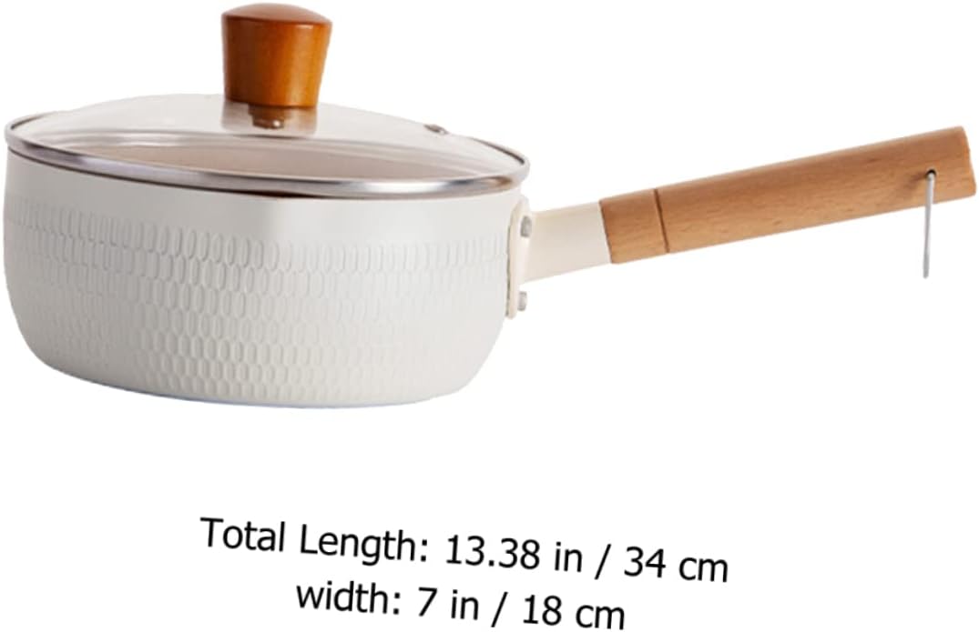 Package Include 1 x set of Characteristics -Color: White . -Size: About 34.00X18.00X8.00cm/13.36X7.07X3.14inch Soup Pan. -Material: , tempered glass, aluminum medical Pot. -Suitable for cooking breakfast, heating mil, preparing complementary food etc Home Breakfast Pot. -Manufactured with , it is very and enough to use Multi-functional Heating Pot. -It can be widely used in electric pottery stove, gas stove and so on. It also can bring much convenience to you Milk Pan. -With this pot, you can cook some simple and delicious food quickly Kitchen Gadget. -With the long handle, you can use the versatile pot safely and conveniently. Milk SaucepanGoods DescriptionSoup Pan This item is a non-stick pot, manufactured with , so that it can serve you for many years.Milk Saucepan This wooden handle soup, milk or sauce making pot is great for home, restaurant.Noodle Pot material that can its durability and practicability