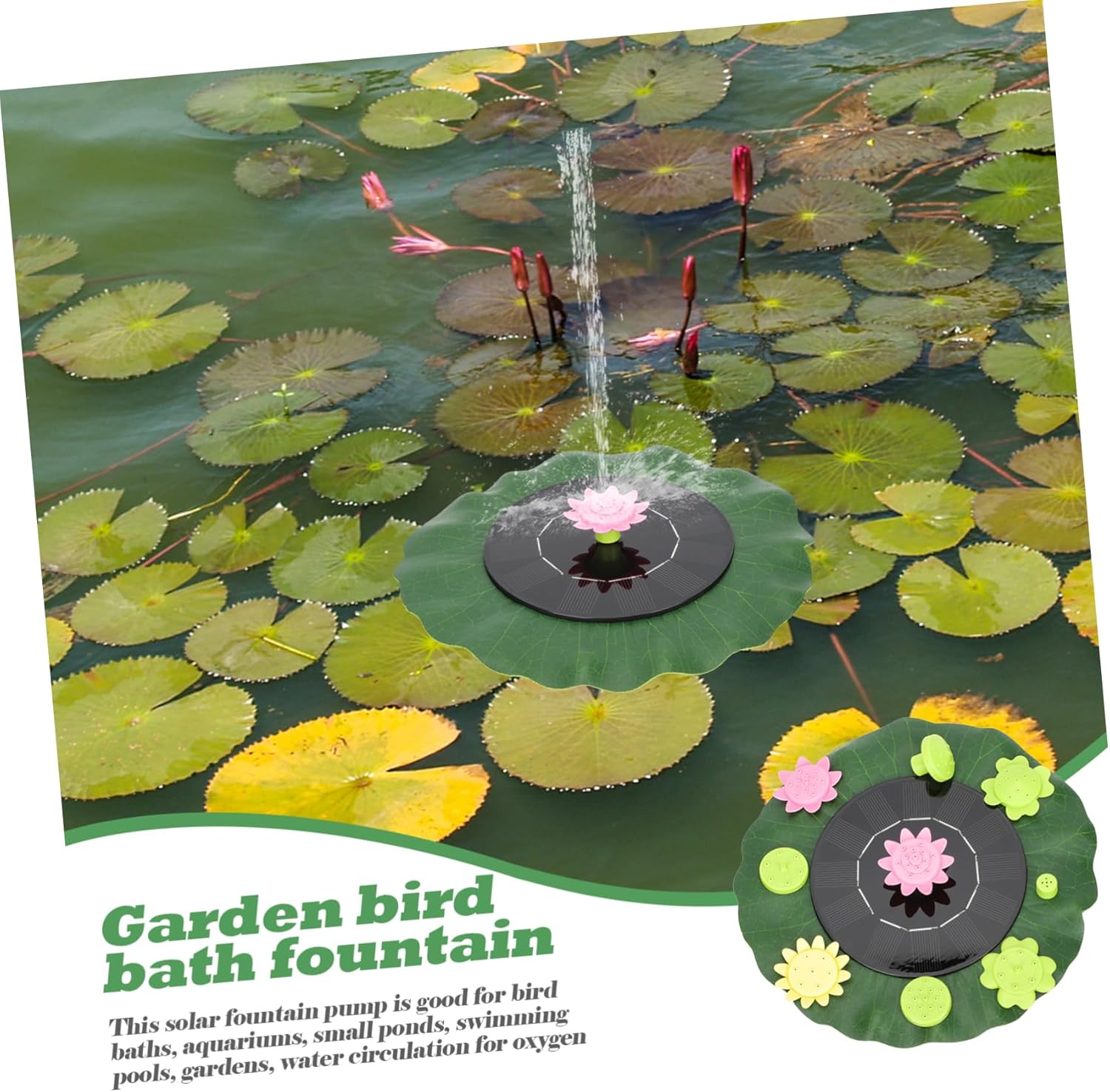 Package List 1 x -shaped Solar Fountain 9 x Replacement Nozzles Characteristics Working temperature: 0℃ -50℃ solar-powered water fountain Material: monocrystalline silicon garden decor life: hours solar fountain outdoor - Material: ABS, Monocrystalline Silicon -flower Solar Fountain Rated power: 1W solar powered fountain outdoor - Solar panel specifications: fountain Rated voltage: 6VDC solar decor - Application: , garden landscape, water pool and more, easy to use yard decor. Water power range: 0.5-0.85W decorations head height (Hmax): 72 cm solar powered fountain - Size: About 22.00X22.00X4.00cm/8.65X8.65X1.57inch outdoor ornaments - specifications: decorations outdoor Flow rate ( ): 120-175 L/H solar water fountain noise:Under normal working conditions, the room temperature (10 cm distance from the tester) <25dB solar fountain Water spray height: 10-60 cm solar fountains - Color: As Shown outdoor decor - Made from , it would hardly rust or break down any time soon solar garden decorations. - Fully powered by the sun, this fountain runs automatically, is and efficient garden solar ornaments outdoor.Goods Informationsolar garden decor It is one of the choices for you.solar water fountain Are you looking for and solar fountain? Are you in search of a sturdy, trustworthy solar fountain that can decorate your ? If your answer is yes, please look further! Our solar energy fountain must meet your needs