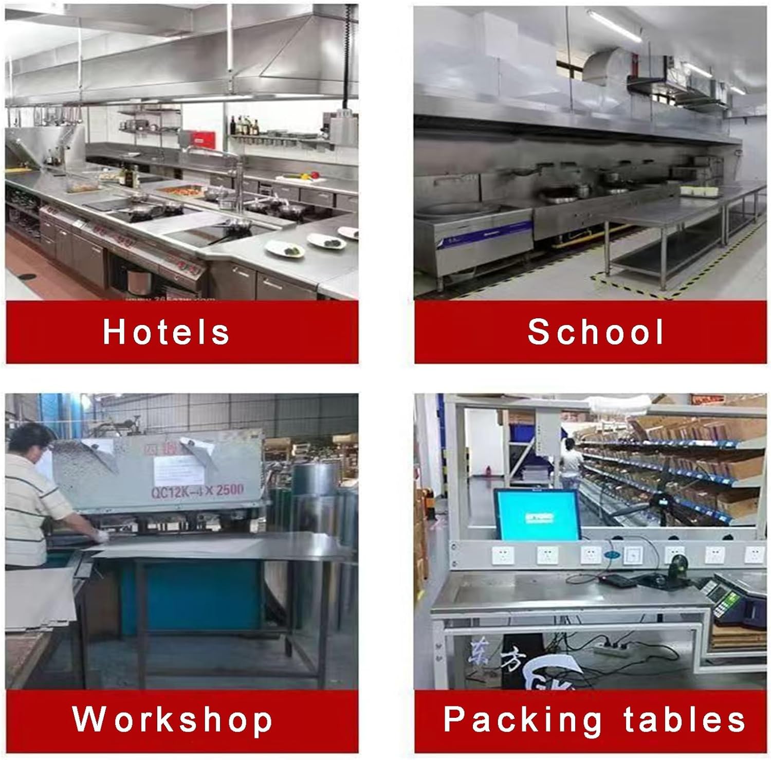 Product Name: Stainless Steel WorkbenchProduct color: as shown in the pictureMaterial: stainless steelProduct Size:70*60*80centimetre/27.6*23.6*31.5"80*60*80centimetre/31.5*23.6*31.5"90*60*80centimetre/35.4*23.6*31.5"100*60*80centimetre/39.4*23.6*31.5"Product content: stainless steel workbench * 1 + installation accessories (does not include kitchen appliances, food, spices and other accessories)Product featuresEdge guard + backrest design makes our workbench more secure, can effectively avoid items falling, oil and other things splashed on the wall, smooth edge guard does not hurt handsSmooth adjustable feet design, threaded adjustable feet design, you can quickly adjust the height of each foot by simply rotating the threaded adjusting knob on the foot, easy to solve the problem of uneven ground, smooth and more secureStainless steel worktable adopts thickened and reinforced design, sturdy and durability, strengthen the load bearing force, the design conforms to the standard, the structure is stable, the connection between the column and the table top is fixed by triangular structure, stable and durabilityAttention1. Due to the different ways of measuring tools, there may be errors in the size of the product2. Due to the way of taking pictures and the problem of light, there may be color errors3. As the product is made of stainless steel welded, there may be scratches and welding points, does not affect the normal use of the product