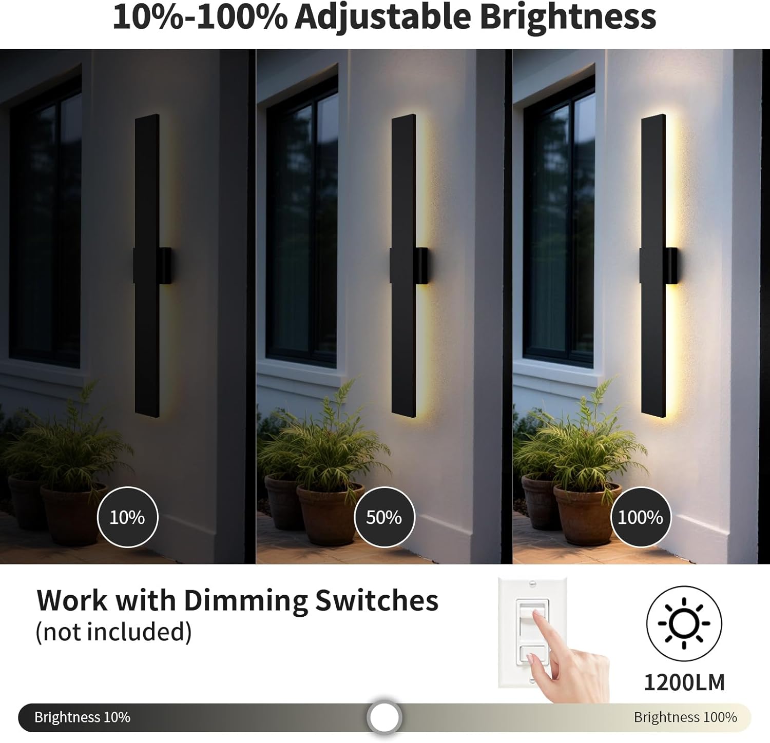 | Other Special Features of the Product | Dimmable & Memory Function, Energy Saving High-quality Material, Multiple Sizes & Wider Lamp's Mounting Plate, Weather-Resistant & IP65 Waterproof |