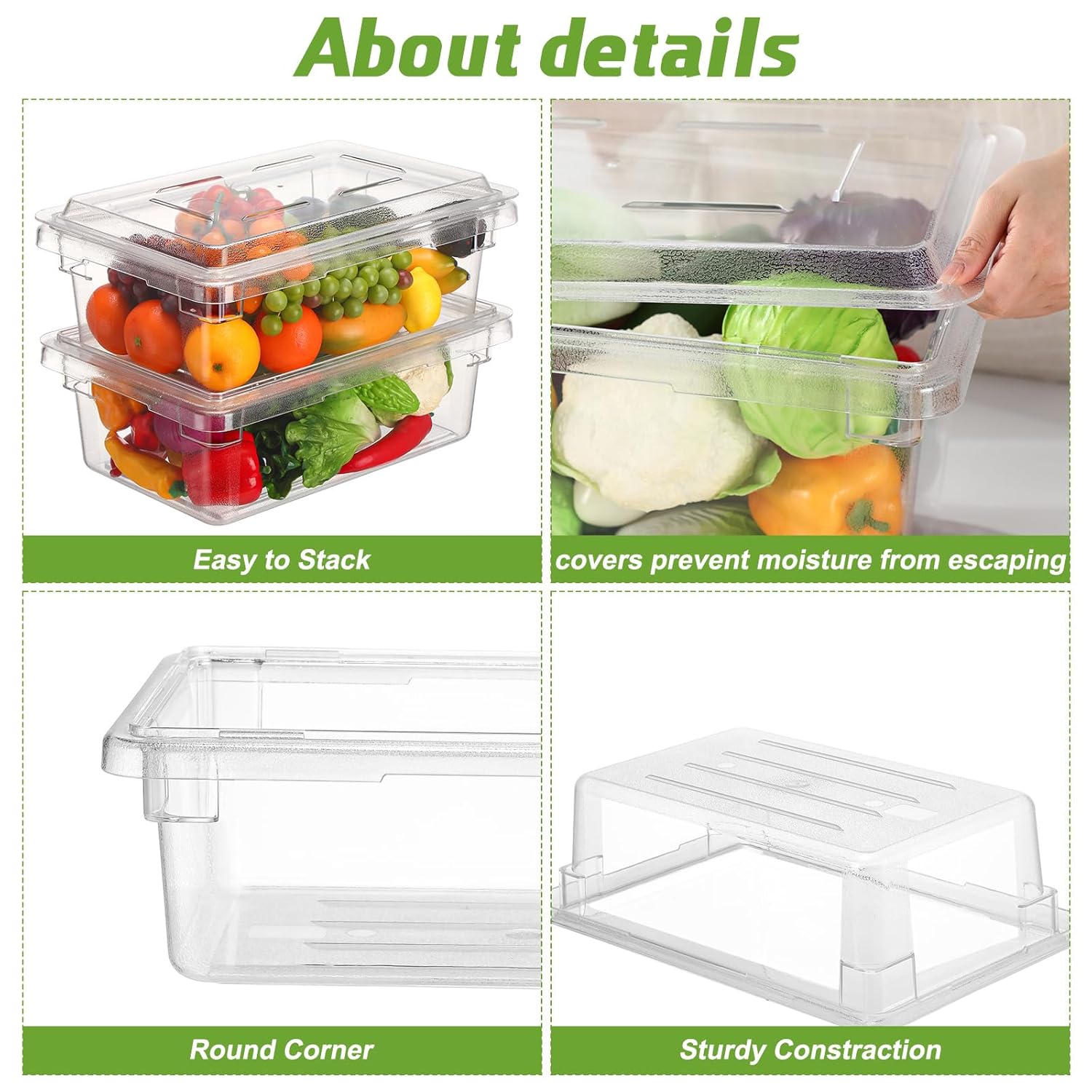 Features: Safety and Convenience: Safety is paramount and we understand that. The food storage boxes and their lids are safe for use in commercial dishwashers and freezers, providing efficiency and safety combined. Perfect for freezing meals for later consumption or dishwasher cleaning after use. Exceptional Durability and Resilience: Crafted with polycarbonate material, this food storage box boasts of virtually unbreakable construction. Resistant to cooking acids and oils, this box is ideal for long term use, even in a busy kitchen environment. Its reinforced corners prevent chipping and warping, maintaining its overall integrity. Specifications: Material: polycarbonate Color: clear Size: about 18 x 12 x 6 Inches Package includes: 2 x Food Storage Boxes Notes: Manual measurement, please allow slight errors on size. The color may exist a slight difference due to different screen displays