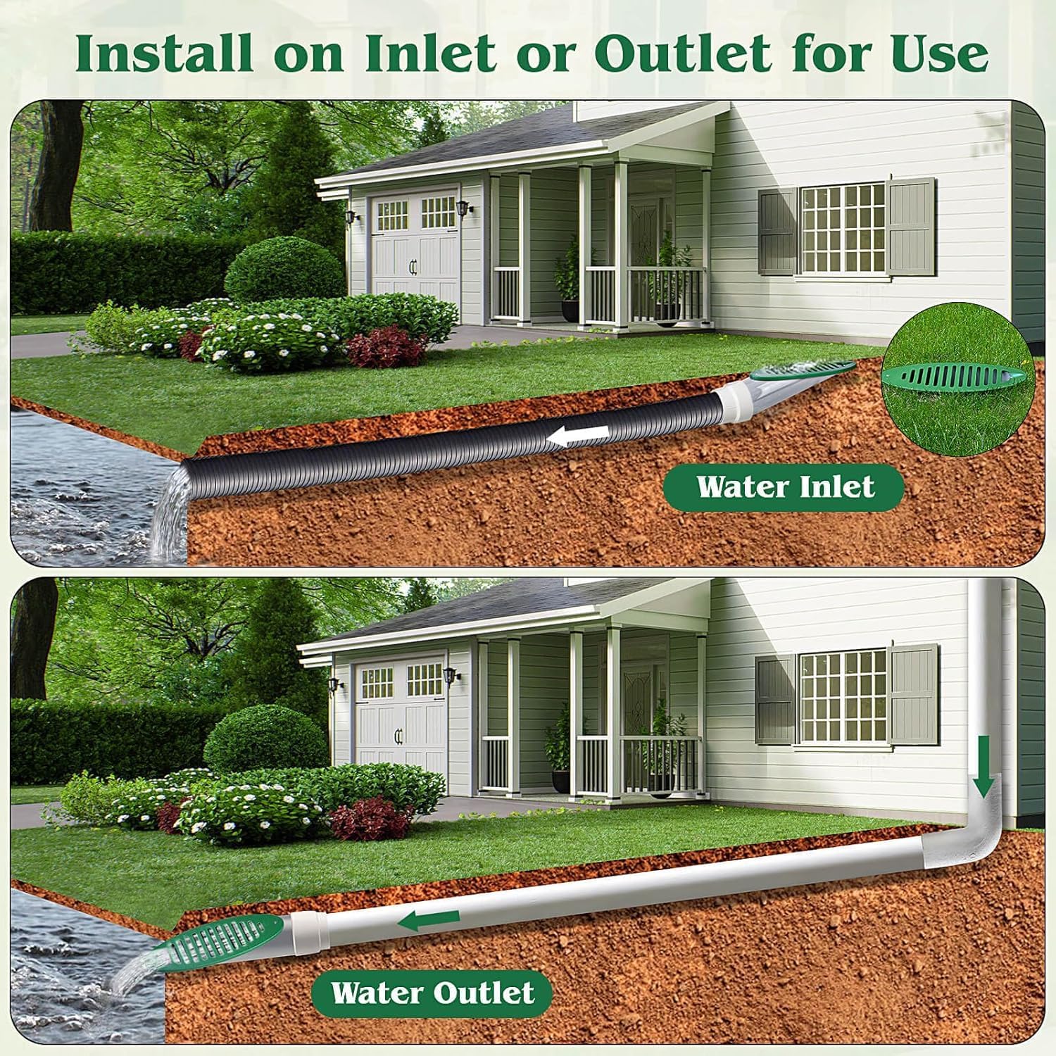 Managing excess water around your home doesn’t have to be difficult. Our 2-Pack 4 Inch Angled Yard Drain Emitters are designed to give homeowners a simple, effective, and long-lasting drainage solution that works in all weather conditions. Whether you’re channeling sump pump discharge, extending a gutter downspout, improving a French drain system, or eliminating pooling water in low areas of your yard—this sloped emitter moves water fast and safely, exactly where it needs to go. The angled design keeps debris and animals out of your pipe, prevents water from backing up, and helps eliminate the standing water that attracts mosquitoes and causes muddy, soggy areas. With a low-profile green finish that blends naturally into your yard, it provides clean function without disrupting your landscape. Compatible with all major 4-inch drainage pipes, this emitter installs in minutes and requires almost no maintenance. A reliable, professional-grade drainage outlet solution that protects your home, preserves your lawn, and keeps your outdoor spaces dry. Perfect for: ✓ Sump pump drain lines ✓ Gutter downspout extensions ✓ French drains ✓ Lawn & landscape drainage ✓ Low elevation yard areas ✓ Side-yard drainage ✓ Driveway & walkway runoff