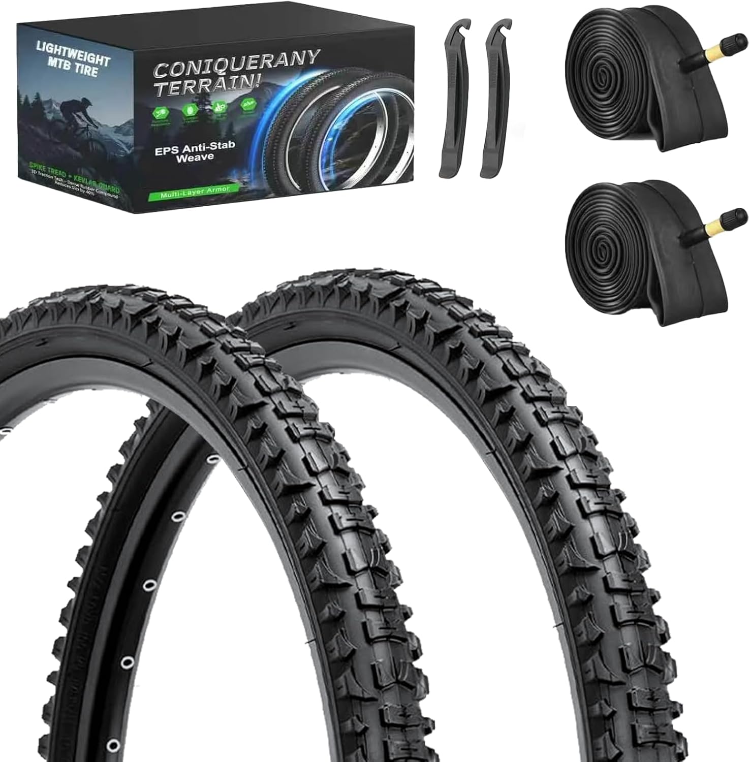 | Included Components | 2* Bike Tire Tube, 2* MTB Bike Tire, 2* Tire levers |