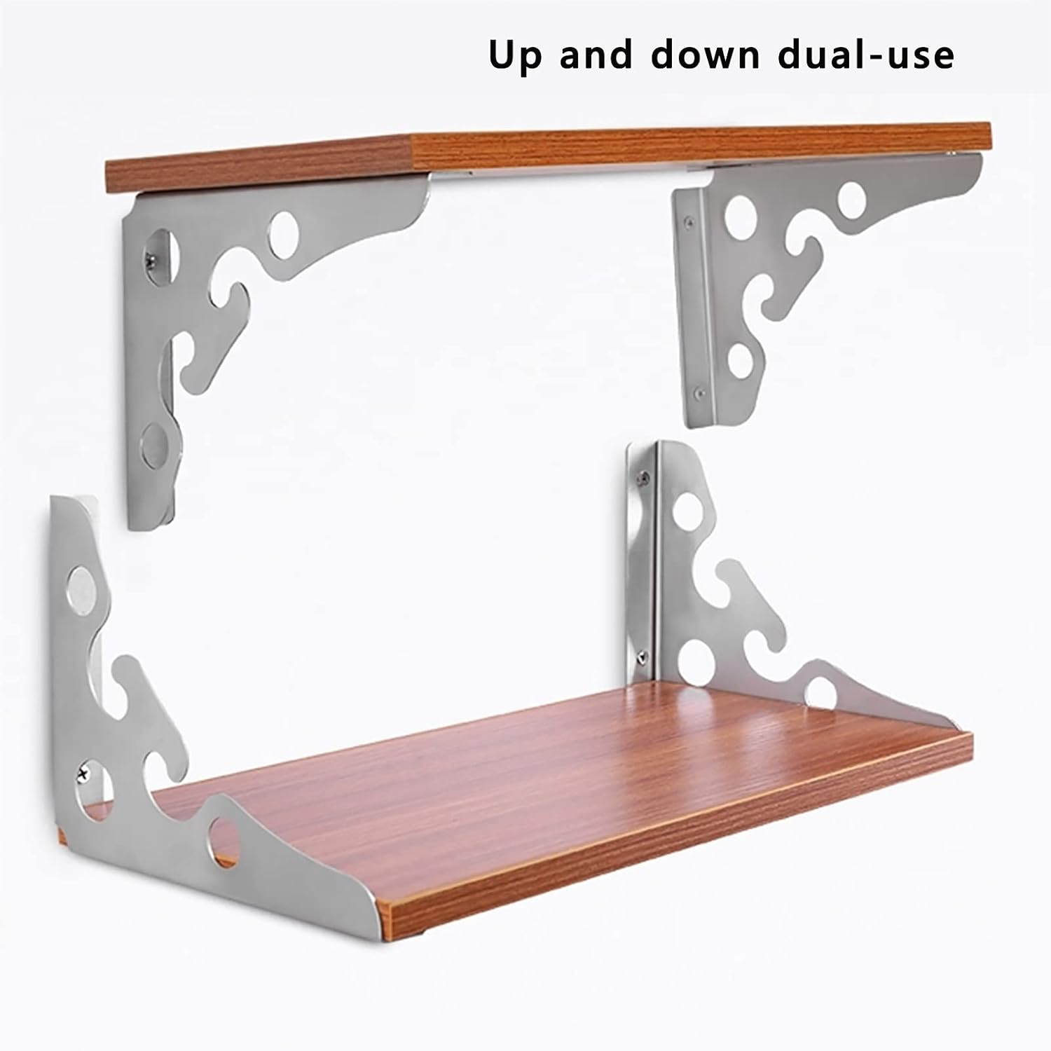 Features: ● Holds more weight -helf brackets for you to add more brackets to holds more weight easily. ● Up and down dual-use humanized design,Highly load-bearing, practical and convenient. ● 90° close to the wall, stable and not shaking,Firm and sturdy bracket fits seamlessly with the wall Parameter : - Product Name : Folding Shelf Brackets - Material : iron - Installation Method : Screw fixing - Max Bearing Capacity : 165lb/75kg Package Include : - Bracket * 1 pair(2pc) - Screws If you have any questions, please contact us in time. We will provide you with 100% satisfactory customer service.