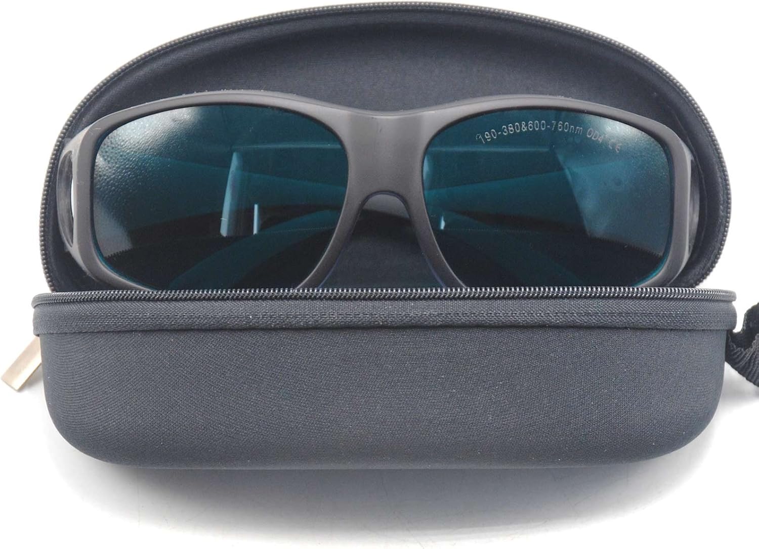Parameter: Product Description:EP-2-9 Protection wavelength: 190-380nm & 600-760nm OD = 4+ Big size, also fit for those who wear glasses themselves. Especially suitable for: UV and red laser and light. High-quality Nano-absorbing PC material. Non-friable. Even if there is scratches, the protection effect will not change. Resistance to alcohol, boiling water. This bid includes one piece of goggles, cleaning cloth and hard case. Especailly suitable for: FHG Nd:YAG laser 266nm, OD5 HeNe laser 632.8nm, OD4 Ruby laser 694nm, OD4 Alexandrite laser 755nm, OD4 Laser light is harm to human eyes, please choose suitable goggles/glasses to protect your eyes! Package: 2 pairs of 190-380nm&600-760nm OD4+ CE Red Laser Safety Goggles Protect Glasses EP-2-9