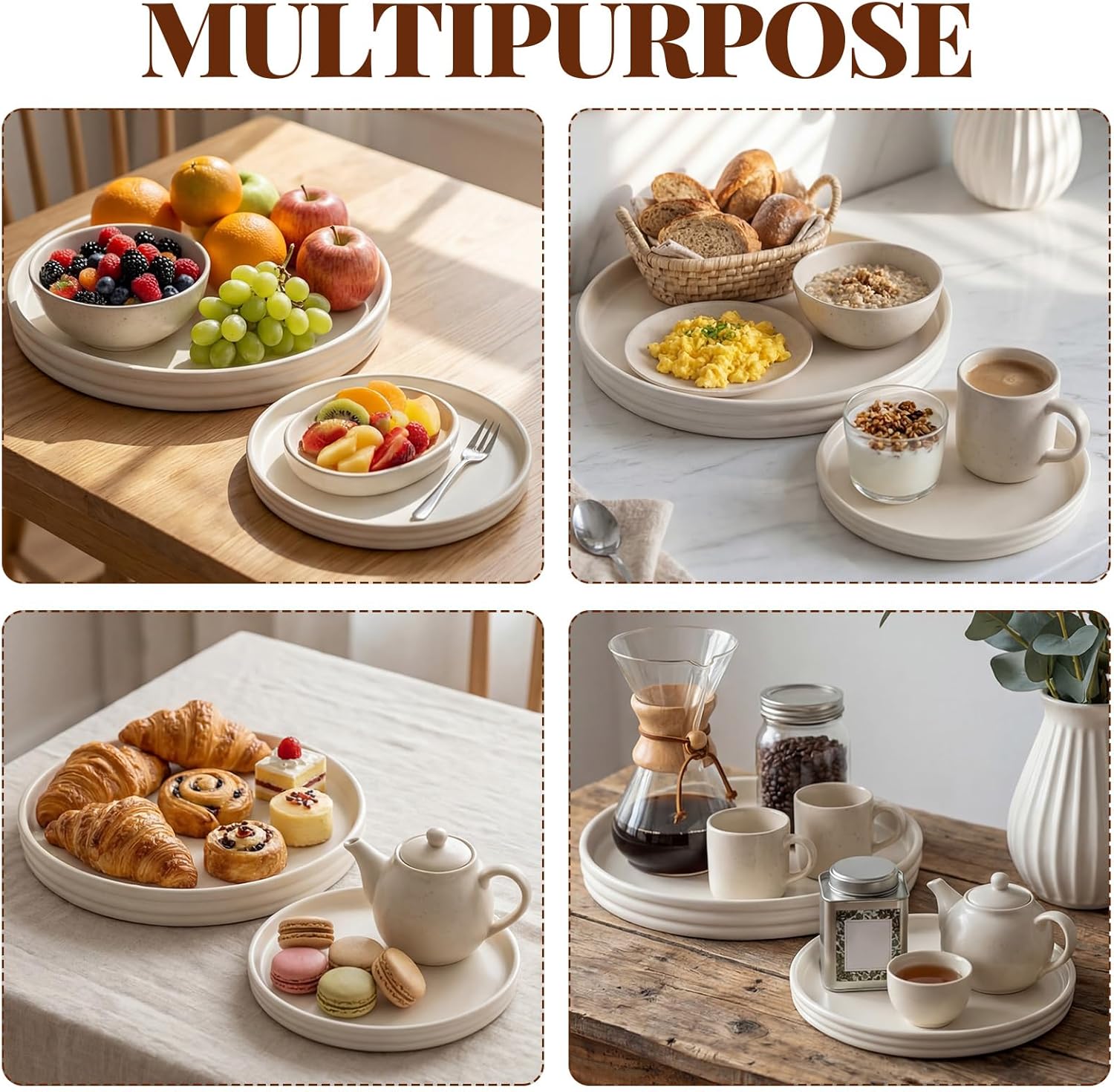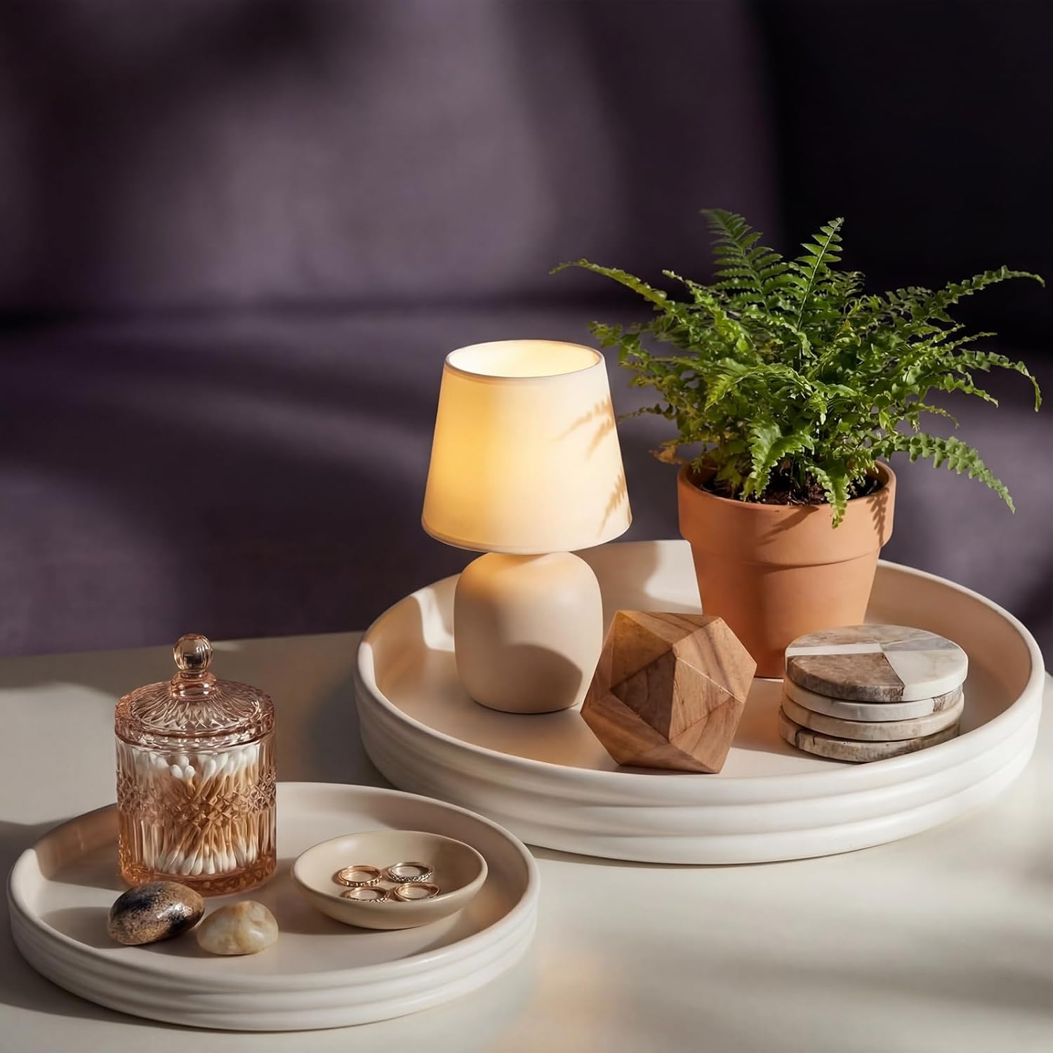 Features: Thoughtful gifting choice: Nice for occasions such as housewarmings, weddings, or birthdays, this stylish and practical round tray for coffee table makes a thoughtful gift. Its charm and functionality instantly elevate any dining table, coffee table, or bedroom decor, reflecting the care you've put into selecting a meaningful gift Space saving simplicity: With their compact size, these white round centerpiece trays help you maintain an organized environment. Whether for neatly arranging spices in the kitchen or showcasing decorative items in the living room, they offer an elegant solution to conserving space while enhancing aesthetics Specifications: Material: wood Color: white Size: Centerpiece tray: 11 X 1.5 inches/ 27.94 x 3.81 cm Centerpiece tray: 9 X 1 inches/ 22.86 x 2.54 cm Package includes: 2 x Round wooden centerpiece trays Notes: Manual measurement, please allow slight errors on size. The color may exist a slight difference due to different screen displays