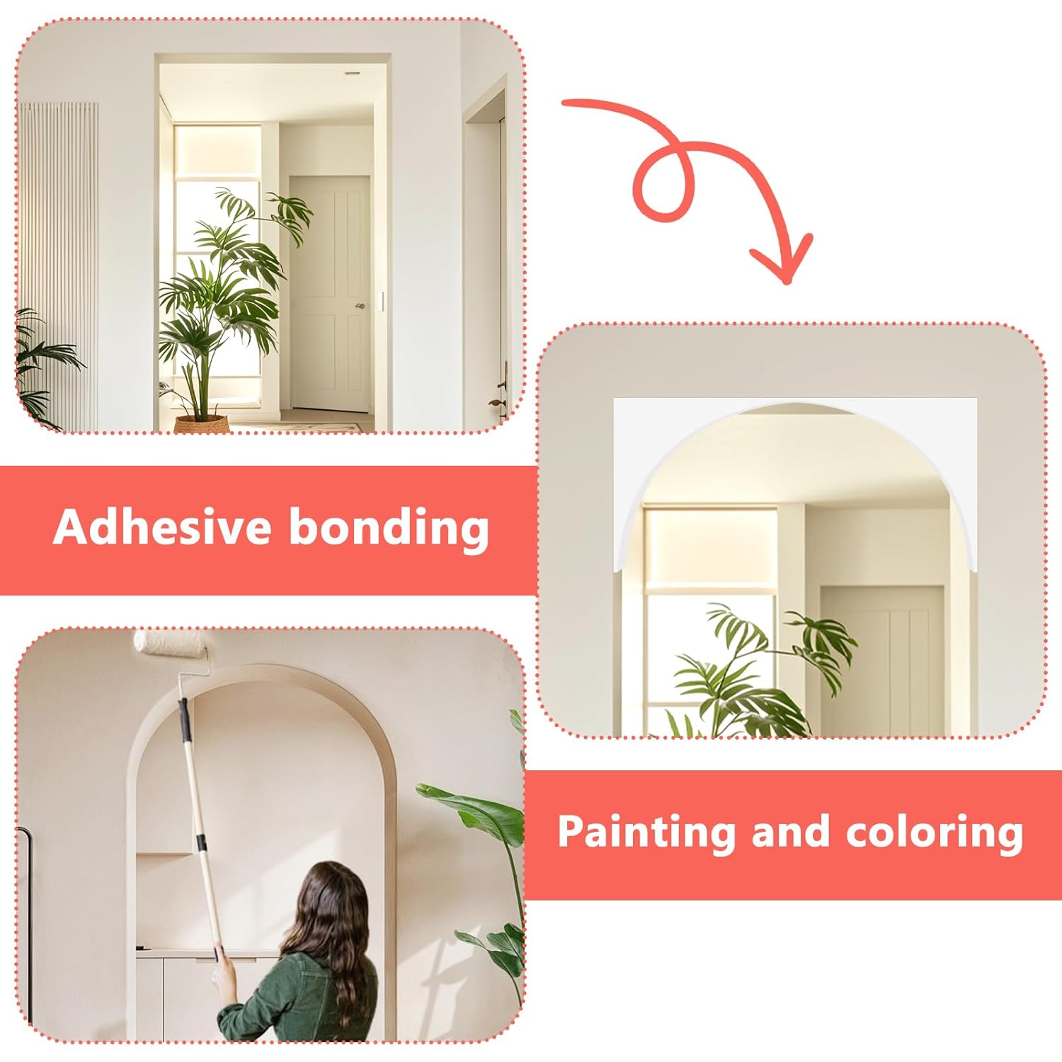 Specification:Package includes: 2 Pcs 3D Rounded Doorway Arch KitMaterial: plasticColor: whiteSize: 9"x 9"x 5" Warm Tips:🔹1、Please allow 1-3cm error due to manual measurement. Please make sure you do not mind before you bid.🔹2、If you need any help, we will provide one-on-one service.