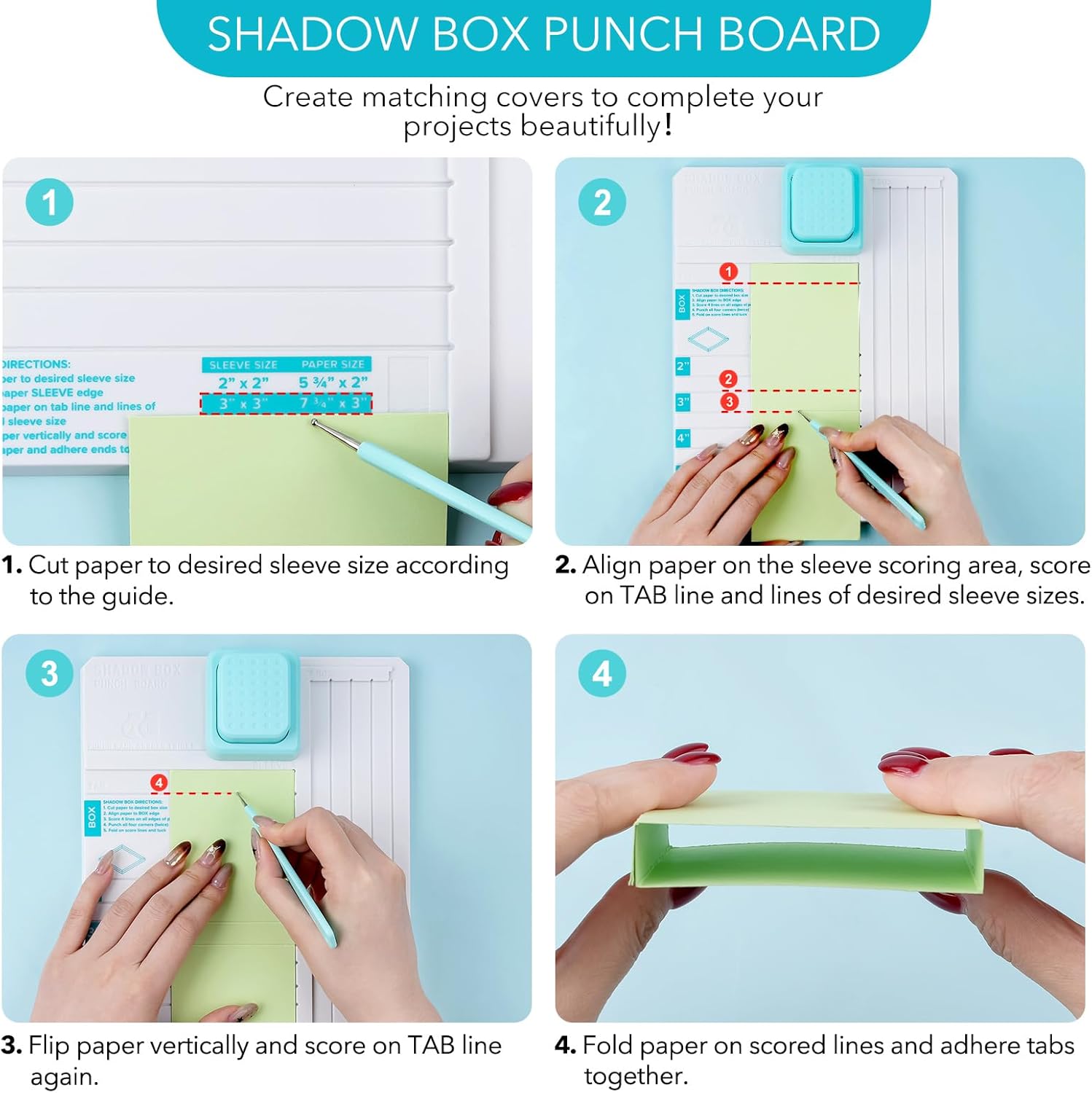 • 【SIMPLE SCORING AND PUNCHING】Score your paper, punch corners twice, then mirror the opposite side for perfect edges, The shadow punch board designs matching covers or wraps to complete your projects beautifully