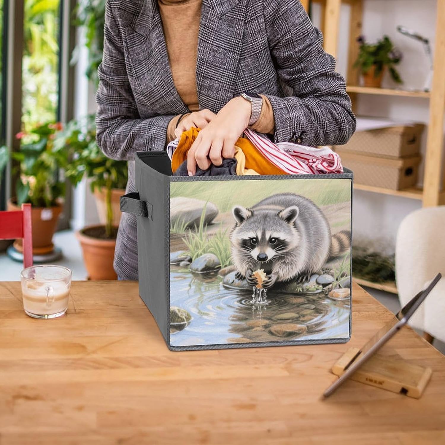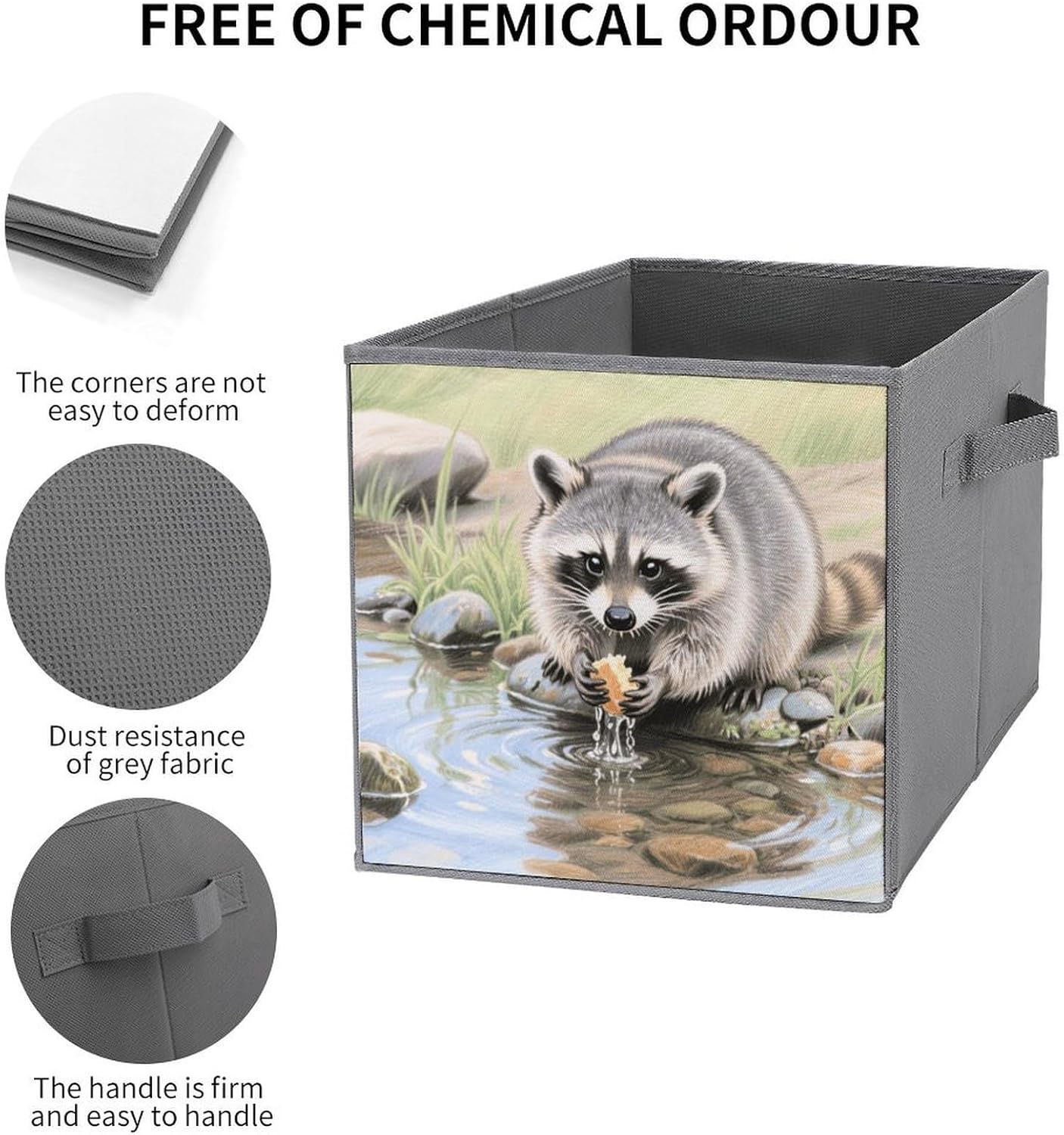Made of durable, water-resistant 2-piece Oxford Cloth for long-lasting use. Tear-resistant for daily use. The lidless design allows for quick access to items, perfect for storing frequently used items such as clothing or blankets. Sturdy double handles on both sides make it easy to carry between rooms. The reinforced, removable base provides good structure and stability. Simply disassemble for compact storage or easy cleaning, the 10.6x10.6x10.6 inch square size has plenty of space to store large items and fits neatly under the bed, on a shelf or in a closet. Use it in the bedroom, living room, garage, or even as a stylish laundry basket.