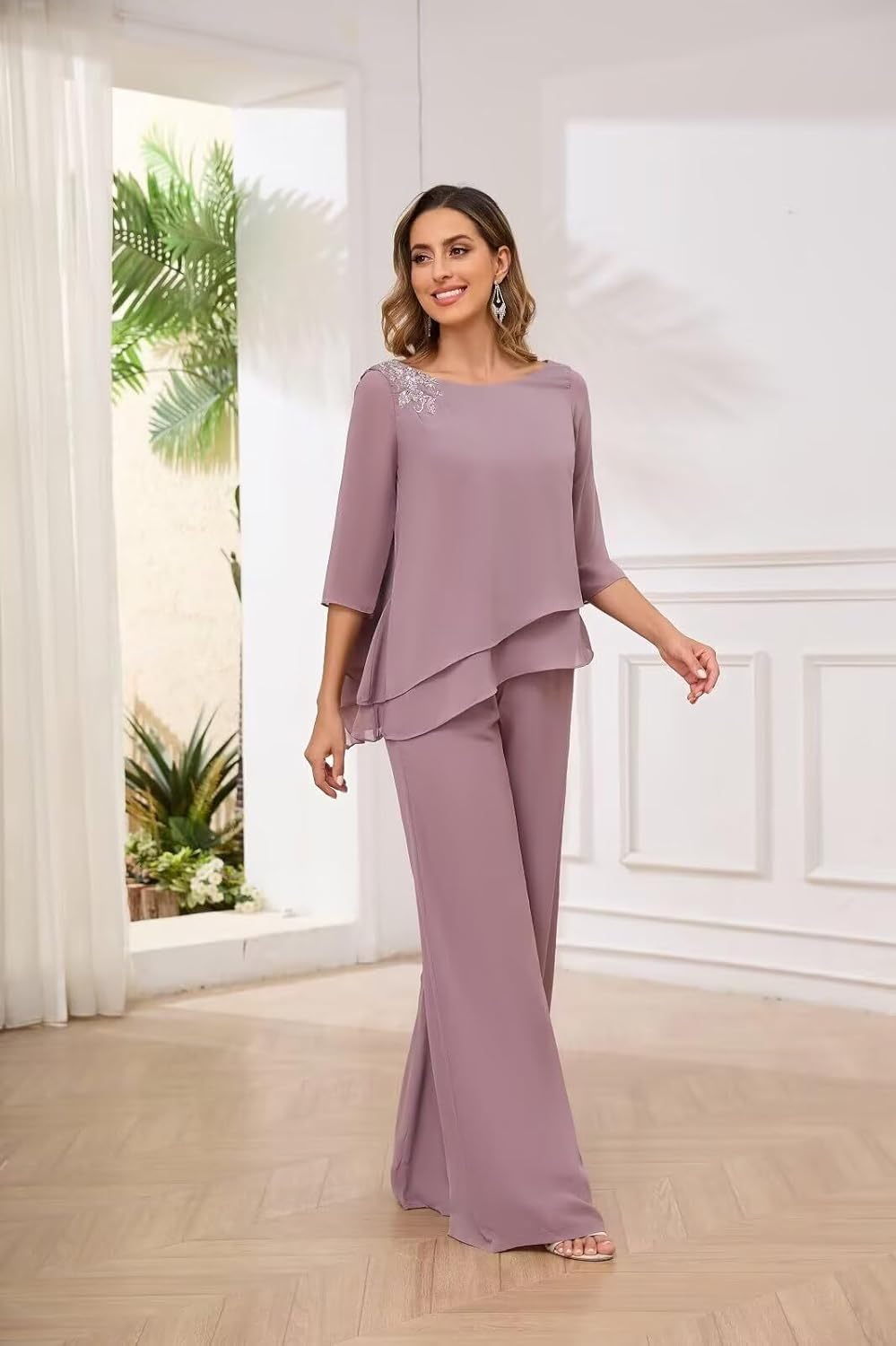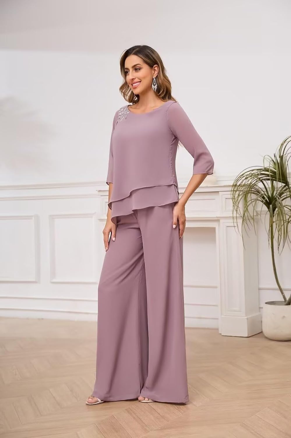 | Fabric Type | Chiffon mother of the bride pants suits with sleeves |