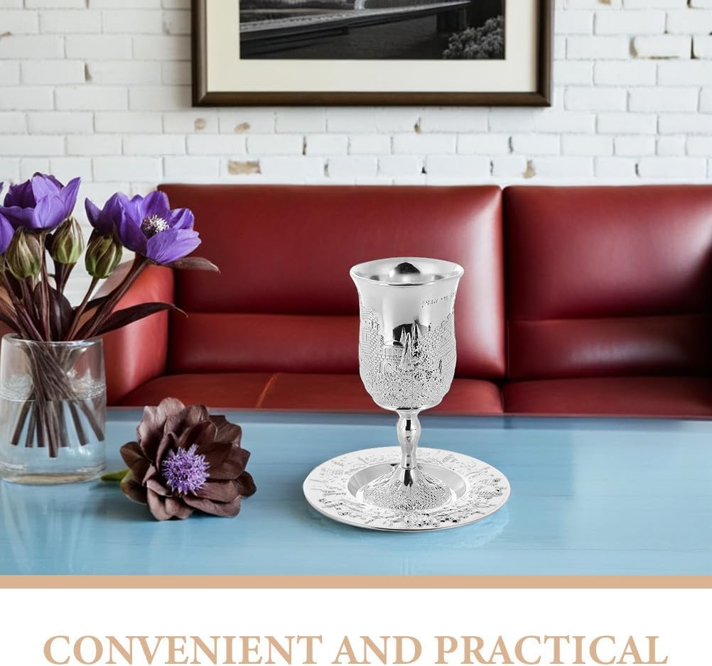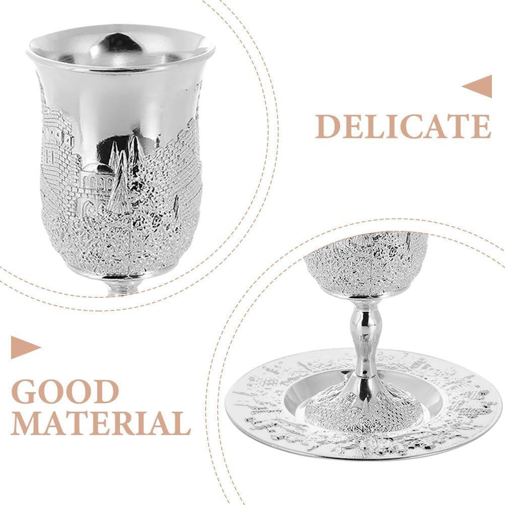 Description Designed for versatility, this holy cup set can be used for wine, liquor, or other beverages during religious or festive occasions. Its compact size makes it easy to store, while the sturdy construction makes sure use. Whether for personal rituals or as a thoughtful favor, it meets a variety of needs. Features -Color:Silver -Material:Zinc Alloy -Size:15.00X13.50X13.50cm/5.89X5.31X5.31in -Jewish tradition: this set is designed to honor and celebrate jewish customs, making for shabbat and passover -Elegant presentation: the sophisticated goblet design enhances the visual appeal of your holiday table, reflecting the host's elegance -sturdy alloy: constructed from alloy, these cups are built to withstand repeated use, promoting sustainability -fit: an excellent holiday favor for those who observe judaism, and cultural heritage -Promotes togetherness: great for family gatherings, encouraging emotional bonding and creating lasting memories