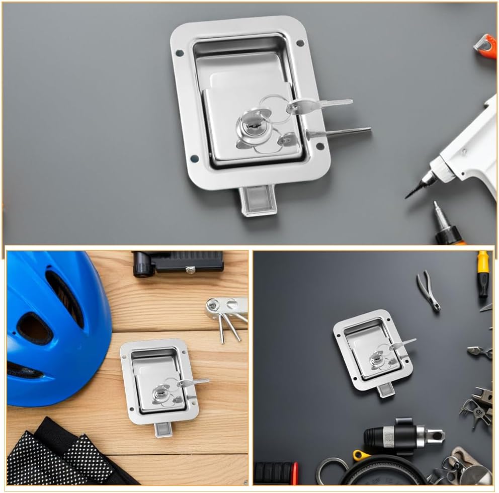 Description This heavy-duty flush panel lock combines robust construction with a user-friendly design, making it suitable for various applications. Its reliable materials ensure long-lasting performance, even in harsh environments. The ergonomic handle allows for effortless operation, making it a practical choice for vehicle owners and professionals. Features -Color:Silver -Material:Zinc alloy -Size:12.00X9.30X4.00cm/4.72X3.65X1.57in -Practical design: the hidden flush lock provides security by concealing the locking mechanism, protecting your vehicle's contents -Durable outdoor performance: built with zinc alloy materials, this lock ensuring dependable outdoor functionality -Silent operation for convenience: engineered for quiet operation, this lock reduces noise during use, making it ideal for nighttime or discreet applications -Quick maintenance solution: streamlined installation and removal process allows for simple maintenance, improving overall efficiency -Multi vehicle adaptability: designed to accommodate various vehicle types, this lock offers universal compatibility for trailers, rvs, and more