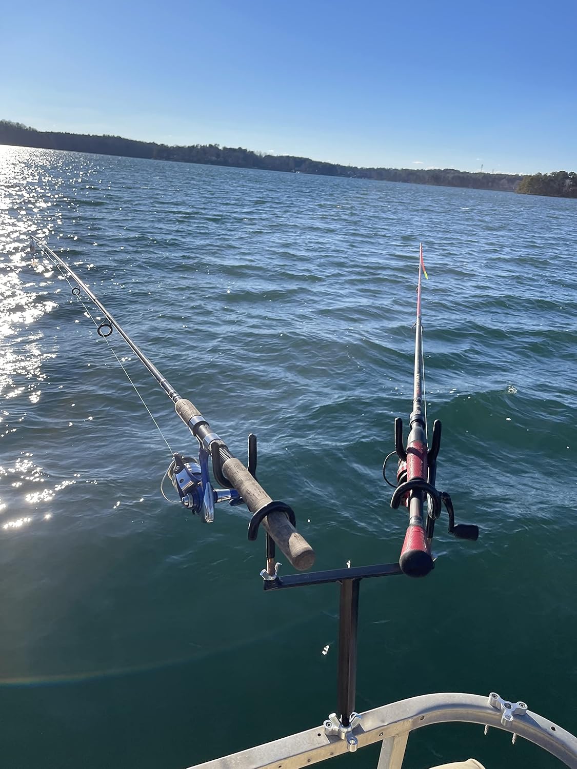 Custom-made 2 rod holder spider rig t-bar. Great for drift fishing and trolling. Great for all types of fish. Strong and Durable. Comes with a base that can be mounted anywhere in your boat or on your dock. Whole setup can be simply unscrewed for storage leaving only the base. Also includes 2 wire form rod holders. Constructed of high strength steel and painted to prevent corrosion. Rod holder angle is 0 to 5 degrees. Coated rod holders may vary in appearance from what is pictured depending upon availability but will always be the advertised angle. T-bar size is 9" wide and 10.5" tall. Mounting hardware for the base is NOT included. 12" height extensions are availiable.