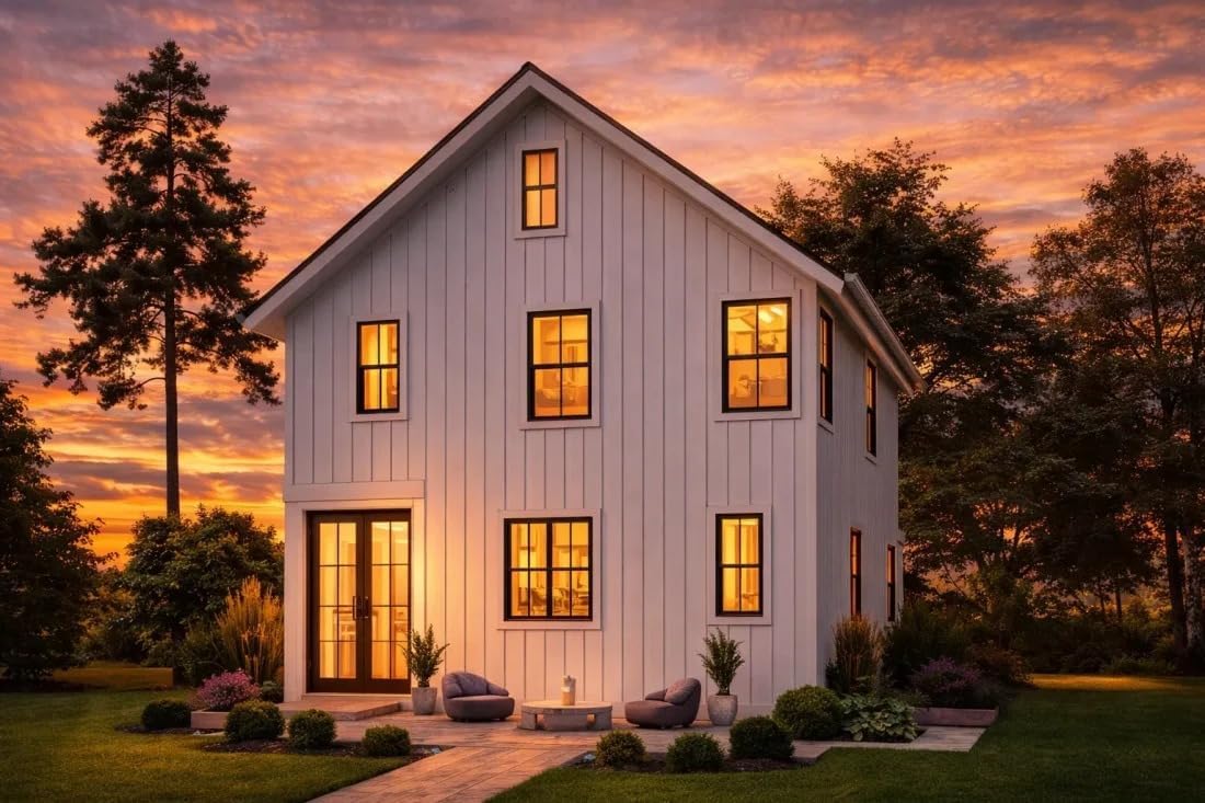 Width: 26′-0″Depth: 34′-0″Htd SF: 1,394Unhtd SF: Modern Farmhouse Home Plan with Open Floor Plan and CAD DesignsExplore this stunning farmhouse home plan featuring 1,394 heated sq. ft., 3 bedrooms, 2.5 baths, a walk-in pantry, and modern blueprint architecture.This modern farmhouse house plan offers a perfect mix of comfort and functionality. Designed for contemporary lifestyles, it blends timeless charm with space-efficient layout and classic curb appeal.Key Features of the Home PlanLiving Areas - Heated & UnheatedHeated area: 1,394 sq. ft. over two stories (714 sq. ft. on the main floor and 680 sq. ft. upstairs).Unheated extras: Covered front porch.Bedrooms & Bathrooms3 well-proportioned bedrooms including an Owner Suite with walk-in closet.2.5 bathrooms, including a private Owner bath and a convenient powder room on the main level.Interior HighlightsOpen floor plan seamlessly connects the kitchen, living, and dining areas. View open layouts.Kitchen island perfect for meal prep and casual seating. Browse kitchen island plans.Walk-in pantry offers generous storage for dry goods and cookware. Explore pantry plans.Walk-in closet (WIC) enhances bedroom functionality and organization.Garage & Storage DetailsGarage Bays: Plan is designed for narrow lots and does not include a garage, making it flexible for various configurations.Garage Type: Optional add-on or detached garage suitable for small lots.Storage: Walk-in closets, pantry, and potential attic access offer ample storage solutions.Outdoor Living FeaturesCharming covered front porch creates an inviting exterior and shaded sitting area. Browse covered porch plans.Board-and-batten siding enhances the home's classic farmhouse aesthetic.Architectural Style: Modern FarmhouseThis design combines traditional farmhouse elements with modern functionality—ideal for families or individuals who crave comfort, style, and efficient space