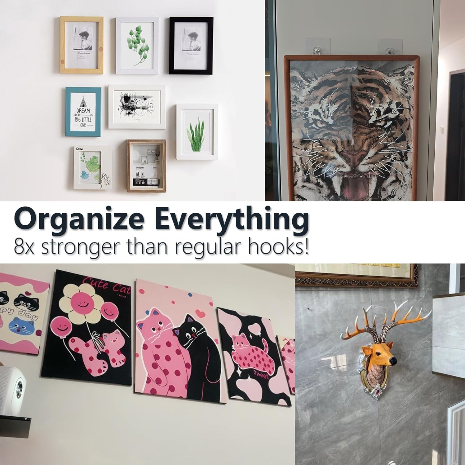 Say goodbye to wall damage and hello to powerful, nail-free hanging with this 20-pack of heavy-duty adhesive picture hooks. Designed to hold up to 33 lbs each, these hooks are built with extra-thick PVC backing and rust-resistant removable metal pegs—perfect for securing everything from artwork and mirrors to kitchen utensils and bath towels. Installation is fast and effortless: simply clean your surface, peel off the protective film, press firmly to the wall, and let it cure for 24 hours before hanging. No screws, no drills, and absolutely no mess. Thanks to their transparent waterproof construction, these hooks blend into any decor while resisting moisture and oil—making them ideal for humid bathrooms, busy kitchens, or sleek living rooms. Whether you’re a renter needing a damage-free mounting solution or a homeowner looking for versatile home organization, these sticky wall hangers offer a secure, clean, and stylish option for every room.