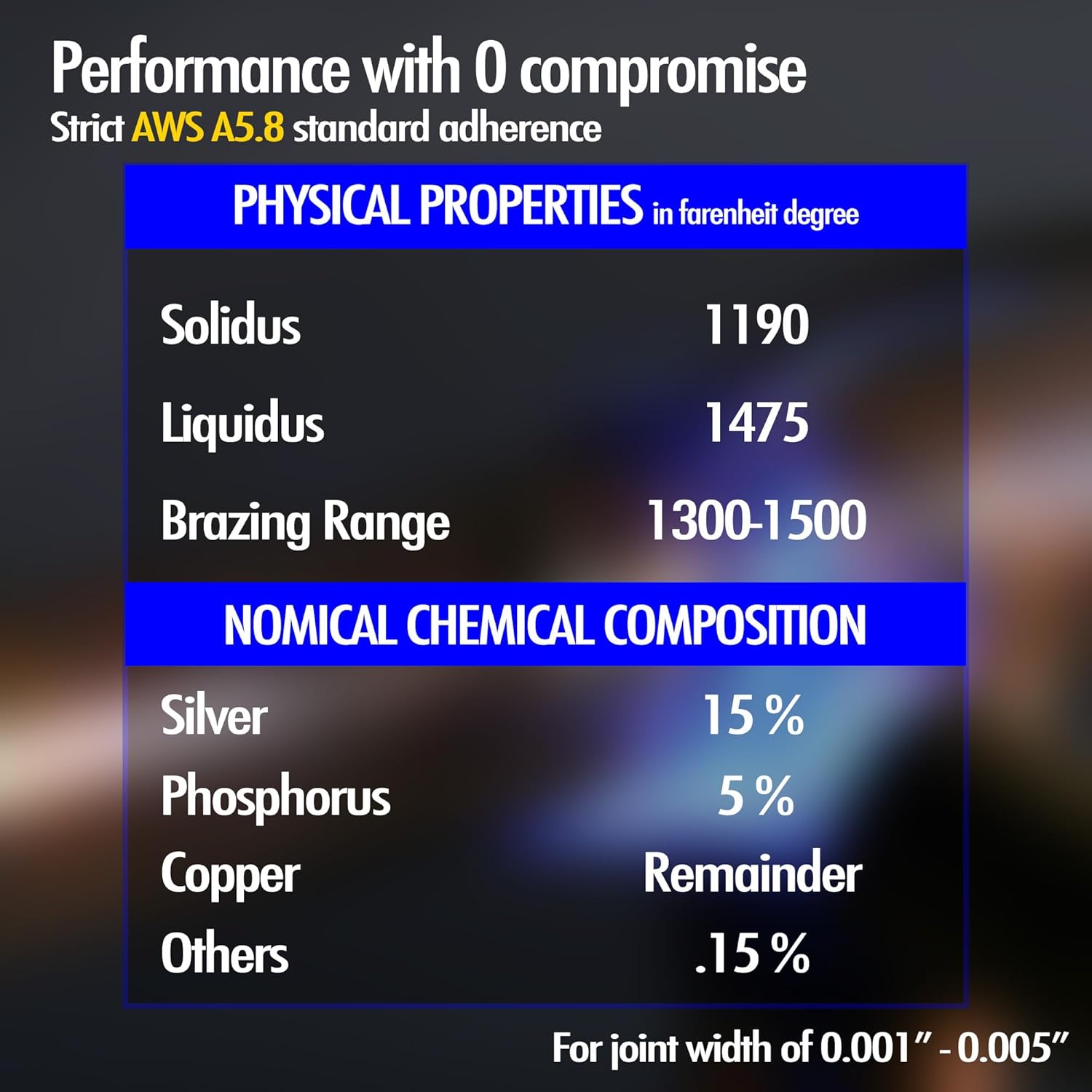 | Included Components | Flux Coated 15% Silver BCuP-5 |