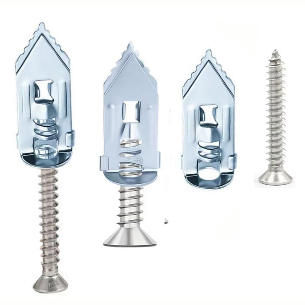 4 Sizes Silver Self Drilling Drywall Anchors with Screws Kit Silver Anchor Specification Anchor Material: Carbon Steel Anchor size : 30mm*12mm Anchor size : 40mm*12mm Screw Material: Zinc Plated Steel Screw size: 30mm*8mm Screw size: 35mm*8mm Screw size: 40mm*8mm Screw size: 45mm*8mm Features Durable Material of Carbon Steeln anchor resistant to rust, corrosion resistance, ageing resistance, both light and tough. Can be remove easily, it is strong and long-lasting, ensuring that your project will be stable and secure. Wide Using : Recommended for medium-duty applications, They are perfect for hanging bathroom and kitchen accessories, curtain rods, small decorative shelves, hall, bathroom and artwork, shelving, mirrors, picture frames, decora, woodworking, DIY projects, and home improvement. Anchors pre-drills precise hole in types of drywall ,no hole preparation required. Self-drilling drywall anchors with Screws Kit, Deep thread design provides strong engagement, locks into many sizes of drywall 3/8, 1/2 or 5/8 gypsum wallboard. These threaded, self-tapping wall anchors boast exceptional hardness, durability, aging resistance, and wear resistance. Easy to installed, just need a screwdriver, No Pre Drill Hole Required. Usage method: 1. Place screwdriver into the recess of the anchor. 2. Press into drywall while turning the anchor clockwise until it is seated flush with wall. * A pre-drilled 6mm hole may be required for denser plasterboard. 3. Place fixture in position over installed the anchor.Insert screw with screw driver.Tighten fixture in place. Package include: 200pcs of (100pcs anchor +100pcs screw) A1: 40pcs Anchor 30mm*12mm +40pcs Screws(30mm*8mm) A2: 40pcs Anchor 30mm*12mm +40pcs Screws(35mm*8mm) A3: 10pcs Anchor 40mm*12mm +10pcs Screws(40mm*8mm) A4: 10pcs Anchor 40mm*12mm +10pcs Screws(45mm*8mm) Note: 1-Different displays &Light shooting may cause the real product may look a little different from the online photos showed, there may be color difference. 2-Due to manual measurement, there may be errors, the measurement error is +/- 1-3mm is allowed. Inportant Note Tips: Small parts, keep away from children under 6 years old.