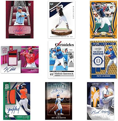 Each sealed box contains 6 packs of 8 cards each in a 45 card set. >>> Each box contains ONE Memorabilia card and THREE Autograph cards. Parallel sets: Red (#'d to 100), Blue (#'d to 50), Purple (#'d to 25), Gold (#'d to 10), Green (#'d to 5), 1-of-1 Black, and 1-of-1 Printing Plates.Inserts: Certified / Contenders Optic / Crusade / Mosaic / Phoenix / Status / Titan / Titanium / Unparalleled (parallels as low as 1-of-1), Classics (parallels > #'d to 100 or less), Legacy / Limited / Magnitude / Obsidian / Rookies & Stars / Score/ Spectra / Timeless Treasures (parallels > #'d to 99 or less), Spectra Silhouettes (parallels > #'d to 99 or less), Spectra Swatches (parallels > #'d to 99 or less), America's Pastime (Autographs > #'d to 99 or less, parallels > #'d to 25 or less; Material Signatures > #'d to 99 or less, parallels > #'d to 25 or less), Ascension Autographs (parallels > #'d to 99 or less), Boys of Summer Autographs (#'d to 49 or less, parallels > #'d to 25 or less), Chronicles Signatures / Legacy Signatures / Limited Signatures / Rookies & Stars Signatures / Score Signatures / Timeless Treasures Signatures (#'d to 99 or less, 1-of-1 Black parallel), Classics Autographs / Luminance Autographs / Origins Signatures / Playbook Autographs (parallels > #'d to 99 or less), Obsidian Autographs (Electric Etch parallels > #'d to 75 or less), Origins Autographs (#'d to 49 or less), Origins Rookie Jumbo Material Autographs (#'d to 99 or less, parallels > #'d to 25 or less), Spectra Prospect/Rookie Jersey Autographs (#'d to 199 or less, parallels > #'d to 99 or less), Spectra Signatures (#'d to 199 or less, parallels > #'d to 60 or less), and Buybacks (#'d to 10).