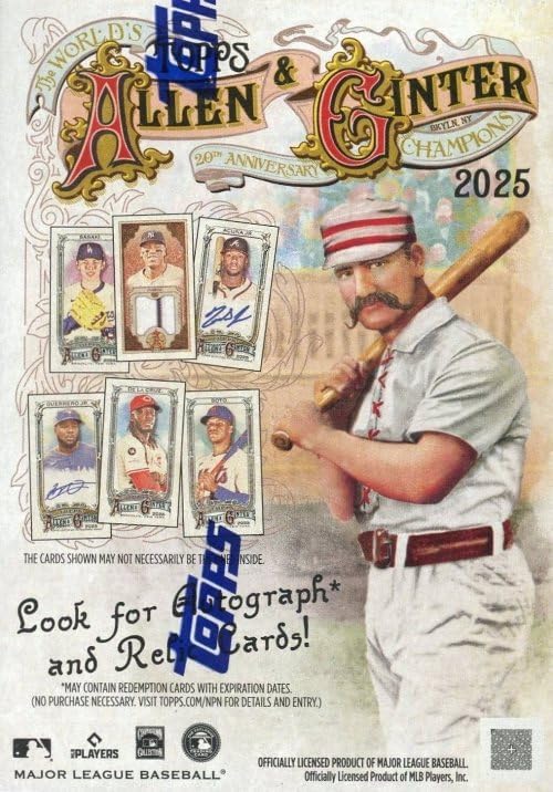 We are Proud to offer this 2025 Topps Allen & Ginter Baseball EXCLUSIVE Factory Sealed Blaster Box! This factory Sealed Box! Includes 8 packs and 6 Cards per Pack Including 8 Mini Base Cards and 8 Insert Cards, on average! Topps Allen & Ginter Baseball returns for its milestone 20th season, bigger, bolder, and as wonderfully unpredictable as ever. This year's set delivers a 300-card Base Set with 50 Short Prints, featuring Baseball rookies, legends, and stars alongside creators, champions, and icons from every corner of pop culture. Look for hits including on-card autographs, relics, book cards, cut signature, rip cards, and more!