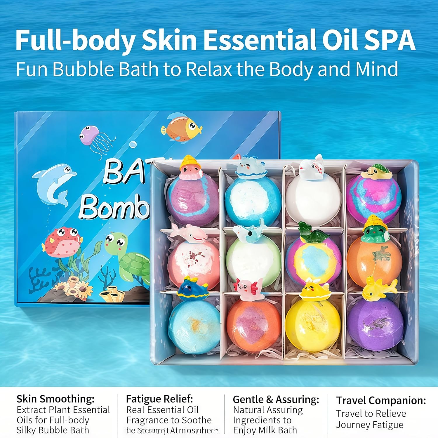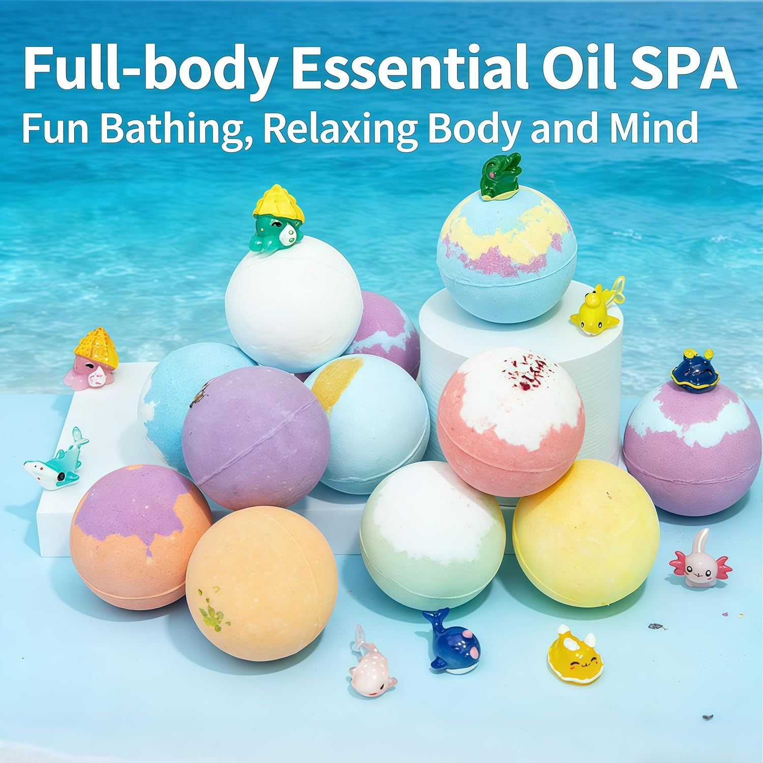 With the 12-Pack Surprise Toy Bath Bombs, your kids will actually beg to take a bath! Just drop one in the water and let the magic happen. They get a colorful, fizzing bubble show, followed by a hidden surprise toy revealSpecifications:Main Ingredients: Glycerin, Citric Acid, Mineral Sea SaltNet Weight (per bath bomb): 2.1 oz / 60 g (Set includes 12 bath bombs, each with a surprise toy inside)Shelf Life: 3 YearsPackage Includes:1 x 12-Piece Bath Bomb Gift Set for KidsNotes:For external use only. Avoid contact with eyes. If contact occurs, rinse thoroughly with water.Discontinue use if skin irritation or rash occurs.Not suitable for children under 3 years due to small parts (toy). Adult supervision is recommended.