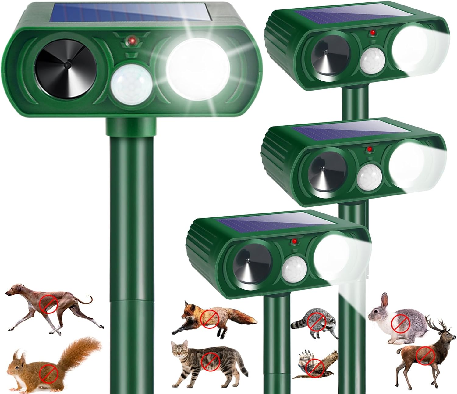 Product Parameters: Model: 2026 Upgraded Fortress Pro (2 Pack)Power Supply: High-Efficiency Solar Panel + Rechargeable BatteryDetection Range: 110°-150° Wide Angle, up to 25 feetFrequency Range: Automatic Frequency Cycling (Low to High)Waterproof Rating: IP65 Industrial GradeEffective Height: 9-10 inches above groundMaterials: UV-Resistant ABS ConstructionProduct Points:Smart Frequency Cycling Technology: Unlike traditional models that require manual dial adjustments, our ultrasonic animal repeller outdoor automatically cycles through a full spectrum of frequencies. This prevents animals from becoming desensitized and effectively acts as a squirrel repellent ultrasonic solution and ultrasonic deer repeller in one.Advanced Motion-Activated Defense: Equipped with a precision PIR sensor, this motion activated cat deterrent triggers instantly upon detecting movement. It combines powerful ultrasonic waves with a high-intensity LED strobe light to serve as a high-performance cat deterrent outdoor.Sustainable Solar Power: This solar animal repeller features an upgraded solar top to ensure continuous protection without increasing electricity bills. It's the ultimate eco-friendly animal deterrent device for long-term yard security.All-Weather IP65 Durability: Engineered to withstand rain, snow, and ice, this animal repellent ultrasonic outdoor unit provides year-round defense, making it a reliable deer repellent devices choice for harsh climates.Humane & Safe Protection: Provides a 100% physical barrier. It is a safe ultrasonic dog repeller and rabbit repellent outdoor that protects your garden without the use of chemicals or traps.Usage Scenarios:Garden & Vegetable Patches: Use it as a rabbit deterrent for yard or ultrasonic squirrel repeller to stop critters from eating your harvest.Lawn & Flower Beds: Deploy as a cat repellent outdoor to keep cats away permanently, preventing digging and fouling.Perimeter Security: Install along fences as a raccoon repellent outdoor or skunk repellent for yard to keep scavengers away from trash bins.Orchards & Farms: A powerful deer deterrent devices outdoor and rodent repellent outdoor to protect young trees and crops from grazing wildlife.Q&A: Q1: Do I need to manually adjust frequencies for different animals? A: No! Our upgraded solar ultrasonic repellent automatically cycles from low to high frequencies, ensuring it works as a cat deterrent for outdoor use and a squirrel deterrent outdoor device simultaneously without complex settings.Q2: Is this effective for stray cats? A: Yes. It is a dedicated outdoor cat repellent that uses specific frequencies to make the environment uncomfortable for strays, helping you keep cats out of yard permanently.Q3: Will rain damage the device? A: Not at all. This ultrasonic repellent outdoor unit features an IP65 waterproof rating, designed to remain your primary dog repellent for yard defense regardless of the weather.Q4: Is it safe to use around my family and pets? A: Absolutely. As a physical ultrasonic pest repeller, it emits sounds that are annoying to pests but harmless to humans.Q5: How long does it take to see results? A: For the best cat away repellent outdoor effect, allow 2-3 weeks of continuous use. Animals need time to associate your yard with the unpleasant ultrasonic sound.Q6: Does it work on large animals like deer? A: Yes, our solar deer repellent technology is specifically tuned to be a high-impact deer repellent devices solution, using strobe lights to startle them at night.Q7: Can I use this for squirrels and rabbits? A: Definitely. It functions as both an ultrasonic rabbit repeller and an ultrasonic squirrel repeller, protecting your landscape from burrowing and chewing.Q8: How wide is the protection area? A: Each unit covers a 110-150 degree arc. This 4-pack provides 360-degree coverage, acting as a comprehensive animal repellent outdoor system for large properties.Q9: What if my yard is mostly shaded? A: While it is a solar animal repeller, the high-capacity battery stores enough energy for several days of overcast weather. For the first use, we recommend a 2-day sun charge.Q10: Is it loud to humans? A: The ultrasonic cat repellent frequencies are mostly beyond the range of human hearing, ensuring your peace and quiet while remaining a powerful animal deterrent device.ultrasonic animal repeller outdoorcat repellent outdoordeer repellent devicescat deterrent outdoorraccoon repellent outdoorrabbit repellent outdoorultrasonic pest repellerultrasonic dog repellerskunk repellent for yarddog repellent for yardsquirrel repellent outdoorultrasonic squirrel repellerrodent repellent outdoorrabbit deterrent for yardanimal repellent outdoorkeep cats out of yard permanentlycat away repellent outdoorultrasonic dog repellentultrasonic cat repellentcat repellent outdoor to keep cats awaymotion activated cat deterrentoutdoor cat repellent