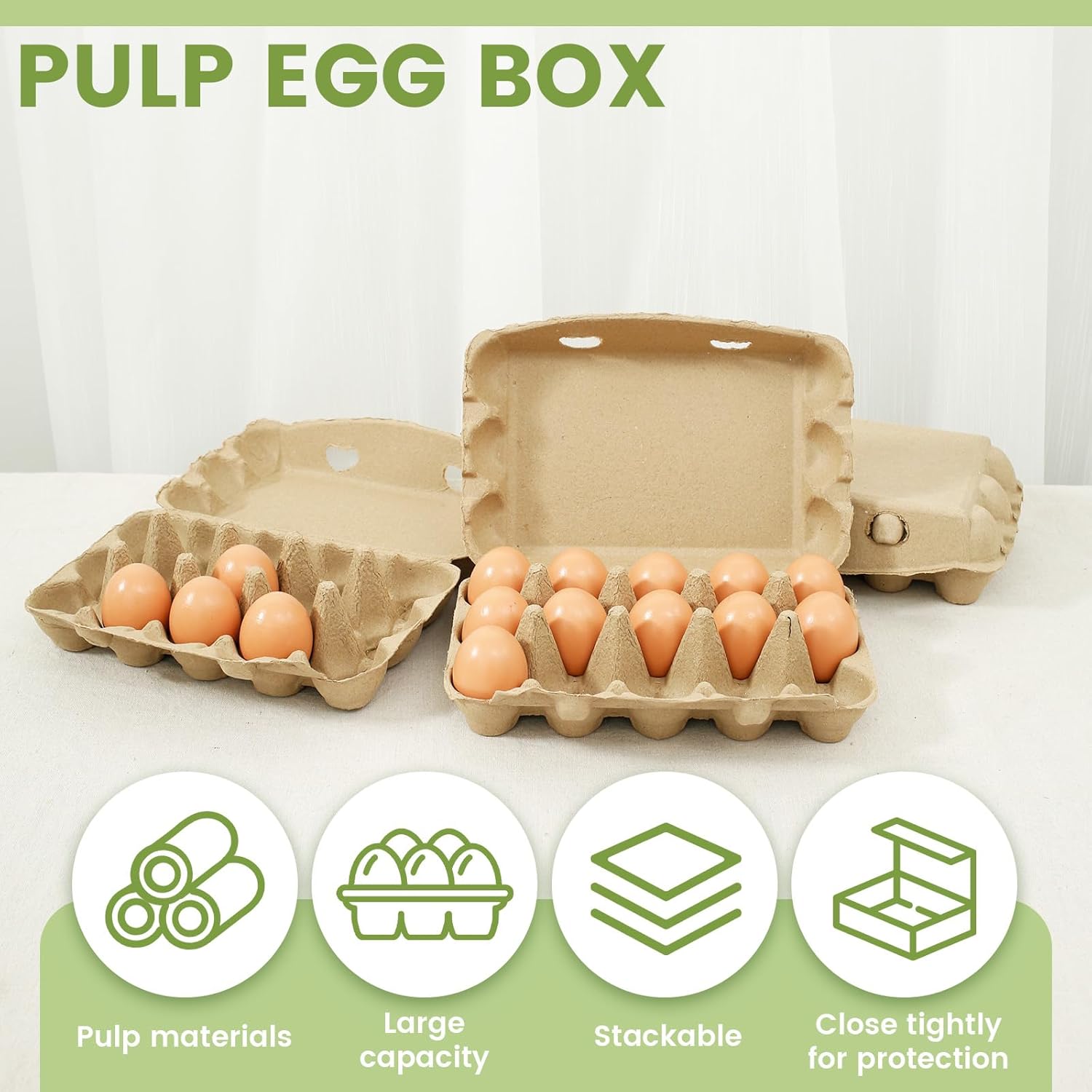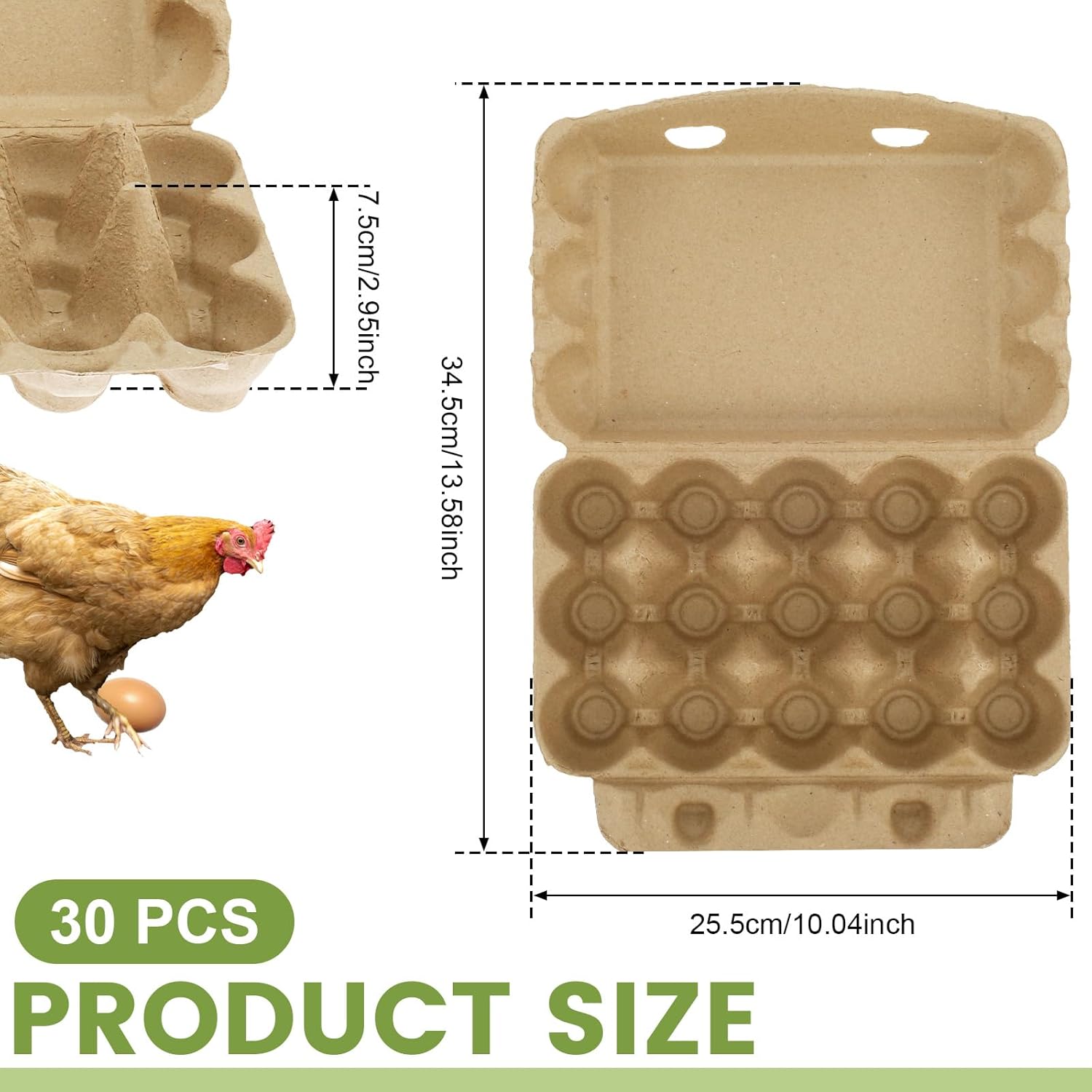 Parts List:01:20 x Egg CartonsOr02:30 x Egg CartonsProduct Specification:Description:The 3x5 design of these cardboard egg cartons is more flexible and adaptable to your diversified needs. Whether it's for daily storage at home or bulk packaging at the store, it can be well adapted. Whether in use or unused, its structure is easy to stack, effectively saving storage space and making storage more neat and orderlyKey Feature:Wide Application: These egg carton trays can meet your personal home or commercial use, very suitable for egg storage and transportation, DIY small ornaments, displaying small crafts, etcEasy to Stack: This blank egg carton can be stacked to help you save storage spaceSpecification:Product Name: Chicken Egg CartonsEgg Tray Expanded Size: about 34.5x25.5x7.5cm/13.6x10x3inTexture: Paper PulpNote:1. There may be slight differences between the picture and the actual color of the commodity. We will try our best to show you the exact color2. Please allow slight dimension differences due to manual measurement