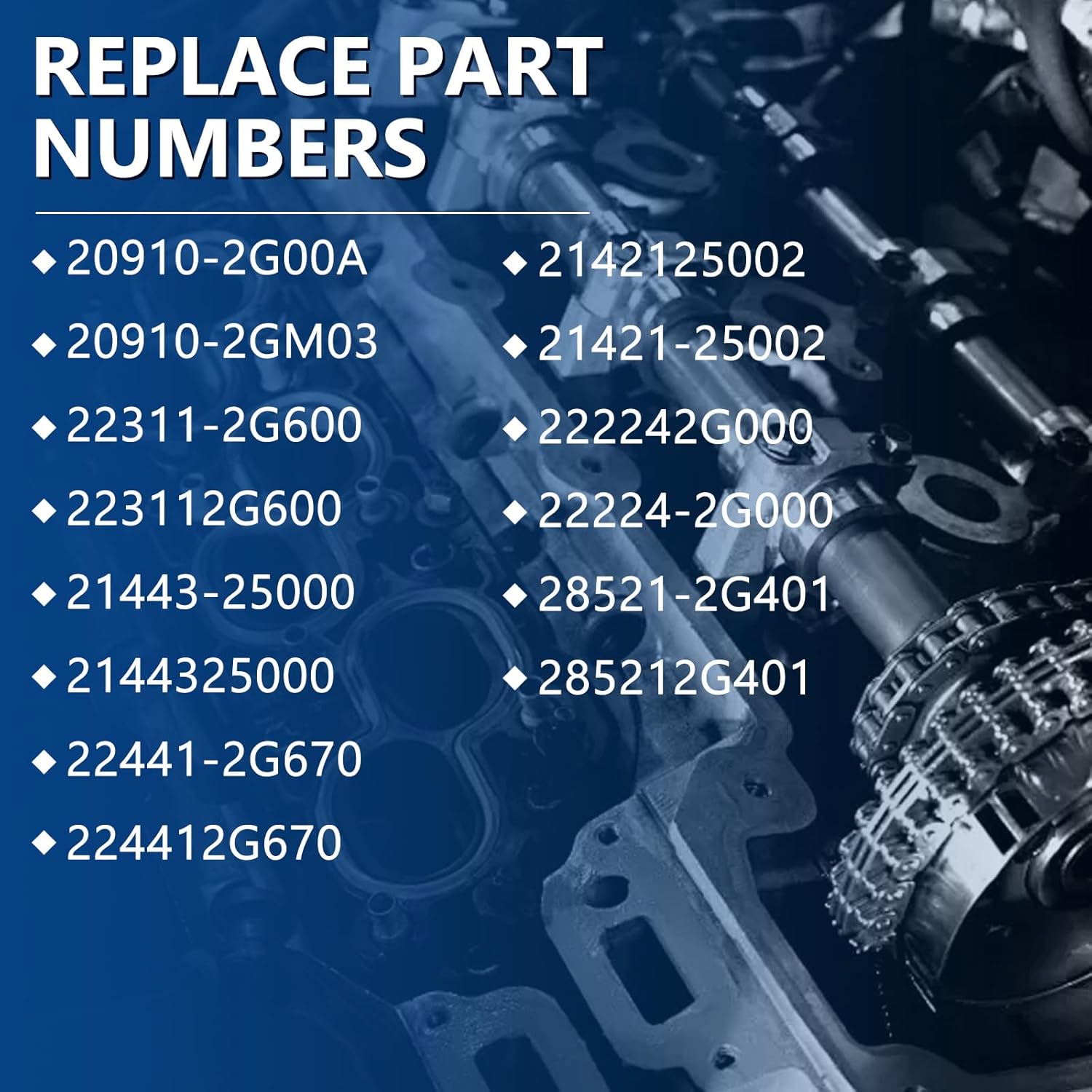 20910-2G00A Engine Overhaul Gasket Set: High quality and durability Replace Part: 20910-2G00A, 20910-2GM03, 22311-2G600, 223112G600, 21443-25000, 2144325000, 22441-2G670, 224412G670, 2142125002, 21421-25002, 222242G000, 22224-2G000, 28521-2G401, 285212G401 Compatible Models: Fits for 2011-2014 Genesis Coupe 2.0L 1998CC 122Cu. In. l4 GAS DOHC Fits for 2011-2015 Optima 2.0L 1998CC 122Cu. In. l4 GAS DOHC Fits for 2013-2016 Santa Fe Sport 2.0L 1998CC 122Cu. In. l4 GAS DOHC Fits for 2011-2016 Sonata 2.0L 1998CC 122Cu. In. l4 GAS DOHC Fits for 2011-2015 Sportage 2.0L 1998CC 122Cu. In. l4 GAS DOHC Gasket Seals Kit Features: Excellent workmanship, solid and durable material Pre-shipment quality control for guaranteed quality Stable performance, easy to install You Will Get: 1 set Engine Overhaul Gasket Warm Tips: 1. Please check the product model carefully before purchase, the number is the same as yours 2. Please standardize the installation to ensure that the product can be well adapted to your car Our Advantages: We have been committed to developing excellent auto parts products, providing customers with reliable high-quality products. And we have a professional customer service team to provide timely services to customers and enhance the shopping experience.