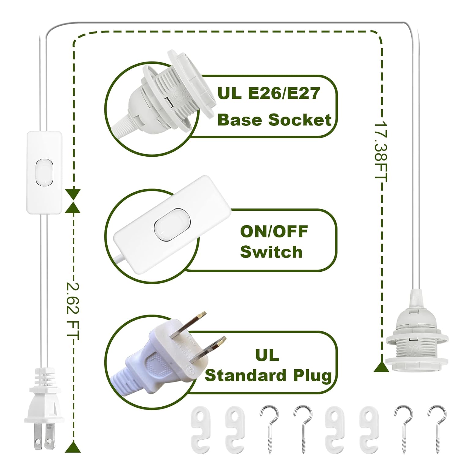 | Included Components | Pendant Light Cord X4, Ceiling Hooks X8, Cord Hooks X8, Socket Rings X8 |