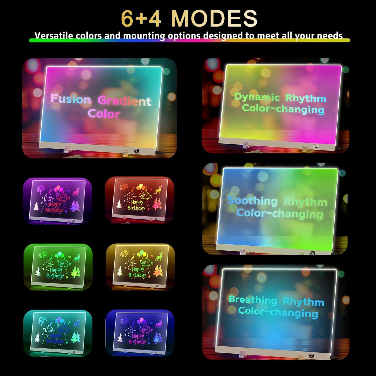 20in Large LED Note Board with Colors, 10 Modes Lumiboard Led Drawing Doard, for Room Party Chirstmas Decoration, Inclueded 7 Markers, Stands,Clean Cloth