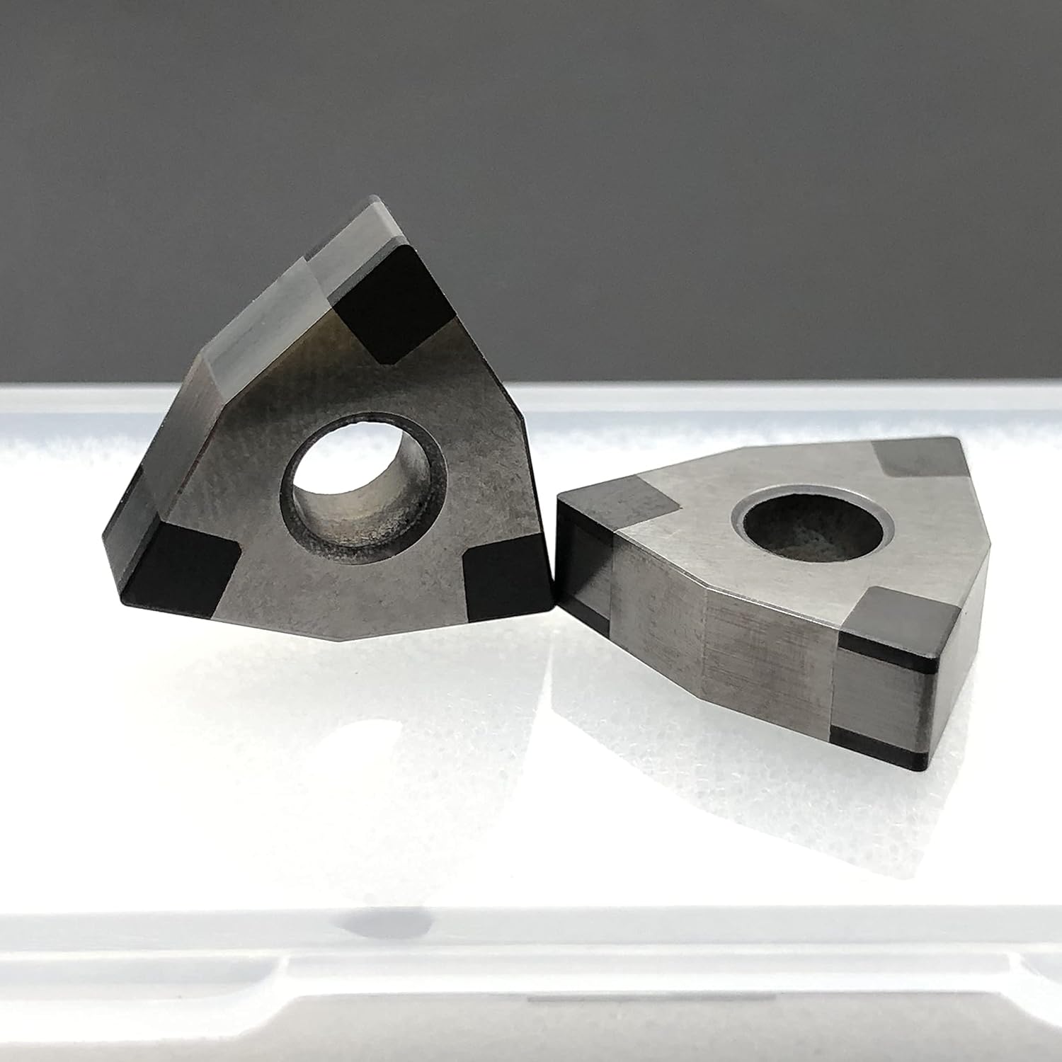TCMT110204 Shape: Triangular Relief angle:7 Thickness0.09”=2.38mm Corner radius:1/64”=R0.4mm WNMG080408 Symbol for lnsert Shape:Trigon Relief Angle:0° Sybol for Tolerance: M Diameter of Inscribed:0.5”=12.7mm Thickness:0.19”=4.76mm Corner radius:1/32” =0.8mm