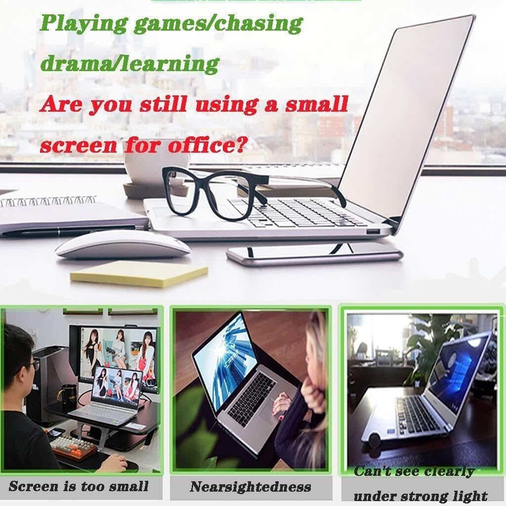 Upgrade your viewing experience with the 21" HD Laptop & Phone Screen Magnifier. Whether you're watching movies, playing games, or browsing content, this magnifier enlarges your screen 3 to 5 times, providing a larger and clearer display for all your digital activities. Equipped with HD zoom optical lenses, it that the image remains and detailed, offering a 3D-like effect for an immersive experience.The magnifier comes with a versatile six-point design, featuring 4 pivot points that rotate 180 degrees for adjustable angles. Whether you're reading books, magnifying a laptop screen, or enjoying music scores, you can customize the angle to suit your needs.In addition to enhancing your viewing experience, this magnifier helps protect your eyes by reducing blue light and mobile radiation. It’s perfect for long hours of screen use, minimizing strain and discomfort.with a wooden frame and ultra-clear optical lens, this screen magnifier combines style and functionality. It’s a great gift idea for family, friends, and loved ones, making it an ideal present for holidays, birthdays, or special occasions. This practical and stylish accessory is especially appreciated by seniors, gamers, and movie lovers who want a better screen experience without straining their eyes.Say goodbye to tiny phone screens and elevate your viewing experience with the 21" Upgraded HD Laptop & Phone Screen Magnifier!