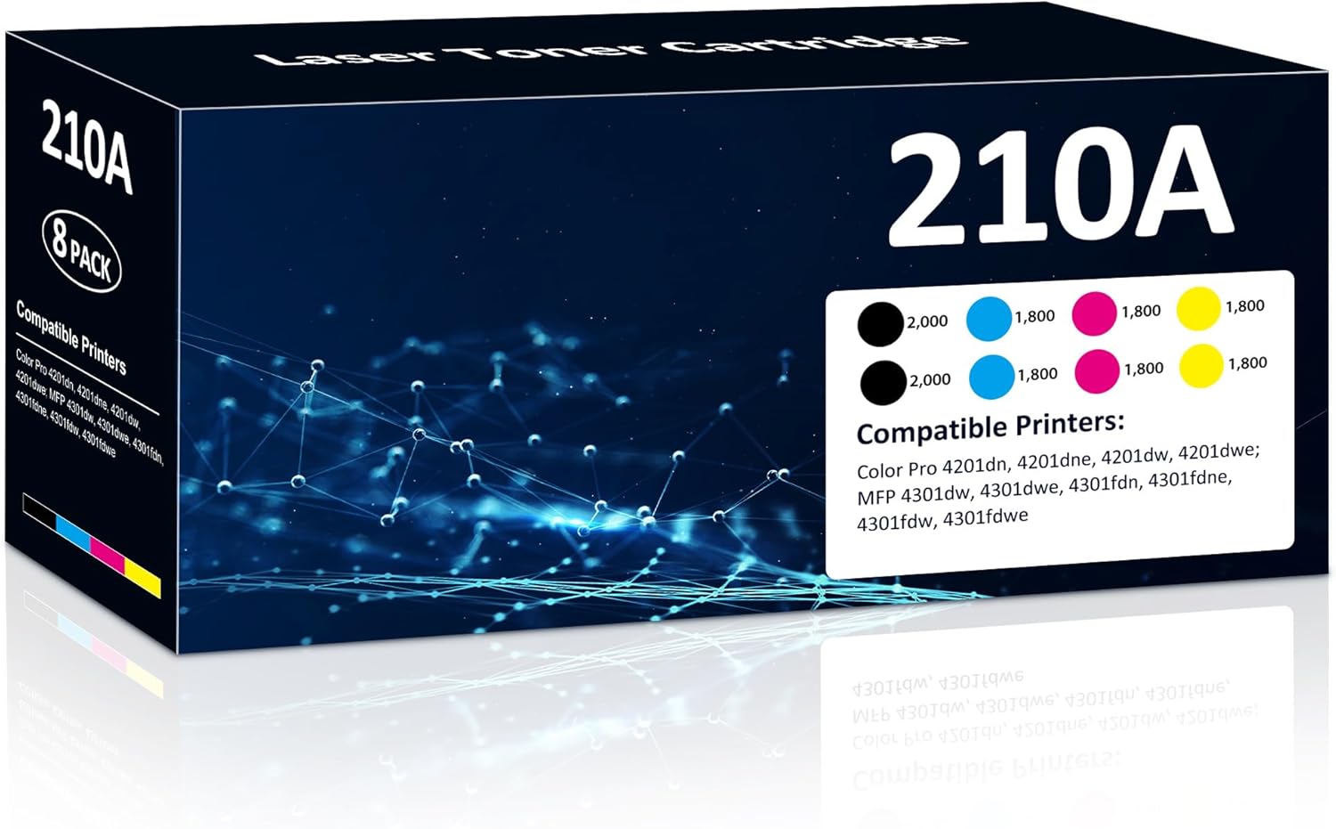 | Compatible Devices | Compatible with Color LaserJet Pro 4201dn, 4201dne, 4201dw, 4201dwe; Color LaserJet Pro MFP 4301dw, 4301dwe, 4301fdn, 4301fdne, 4301fdw, 4301fdwe, replacement for 210A Toner Cartridge. Compatible Replacement for 210A W2100A. |