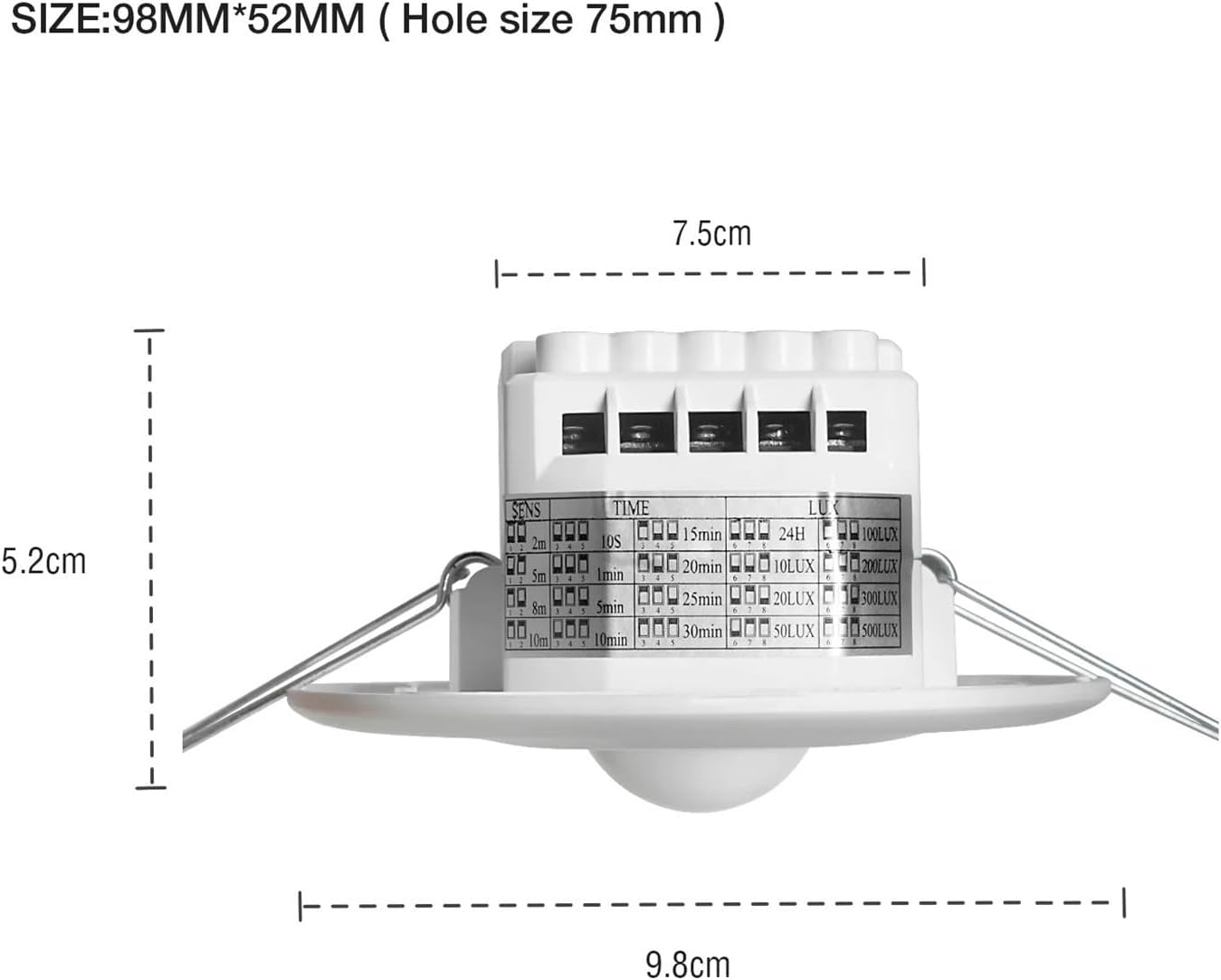 220-240V/AC Microwave Radar Sensor Motion Detector Light Switch For Led Microwave sensor instruction:The sensor is an active motion detector,it emits electro-magnetic wave(5.8Ghz) and receive their.The sensor detects the change in from even the slightest movement in its detection zone. A microprocessor then triggers the "switch light on" command. Detection is possible through doors,panes of glass or thin walls.Specifications:power source: 220-240 voltMax load: 1200W50/60HzTime delay: 10 seconds to 30 minutesDetection angle: 360 degreeWorking temperature: -15 to +70 CIdeal installation height: 2 - 4 metersPower consumption: 0.9 WLight control: 10-500LUXDetection distance :2-8m (radius) adjustableProduct size:Package size: 10*4.6*10CMPackage include:1 x Microwave Motion Sensor Switch,1 ManualFeatures:This microwave motion sensor reflects the latest development in interior technology andprovides close to zero energy wastage in terms of lights being on unnecessarily.Commonly used to control and extract ventilation.Power-saving by ensuring lights and fans are not left on.They will save energy by ensuring lights and fans not to be left on.The energy savings will be high with a short energy saving investment payback timeif connected to average energy level such as fluorescent tubes, or compact fluorescent lamps.Higher savings if controlling tungsten or halogen .The time of the light can last or adjust automatically when you enter and stay in the roomand the light will go out according to the time of your your setting when you leave the room.Pluggable type of the terminals which make easier and much convenient to install.Applicable to monitoring equipment,warning facility, LED lamp, fluorescent lamp, incandescent lamp,ventilator and magnetic valve and so on.Can be installed on wall, ceiling and anywhere of your house.Indoor use onlyNote:The 220V fire line should be connected with "L".The 220V zero line should be connected with "N".The loaded fire line should be connected with "L ".The loaded zero line should be connected with the 220V zero line of the power source.Material : PlasticSwitch Type : Sensor SwitchModel Number : 031Features : microwave sensor switchItem Type : SWITCHESIs Smart Device : NoOrigin : Mainland ChinaWorking Voltage : 220-240V/ACDetection Range : 360 degreeDetection Distance : 2-8m (radius) adjustableAmbient Light : 10-500LUX (Adjustable)Time Setting : 10sec to 30min (Adjustable)HF System : 5.8GHz CW radar , ISM bandPower : 50/60HzMounting Height : 2m~4mPower consumption : approx. 0.9WRated load : 1200WSize : 98MM*52MM ( Hole size 75mm)