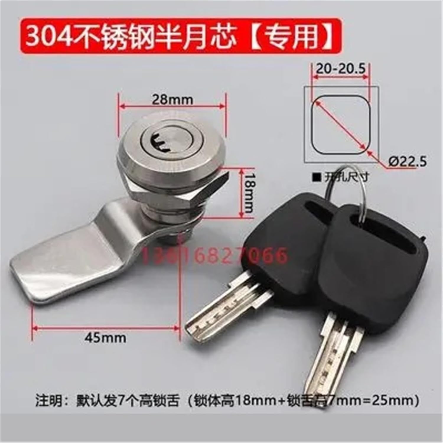 Latch22mm Distribution Cabinet Lock Panel Lock 304 Stainless Steel Crescent Lock Cylinder Cabinet Door Lock Cam Cabinet Lock MS705 1Pcs