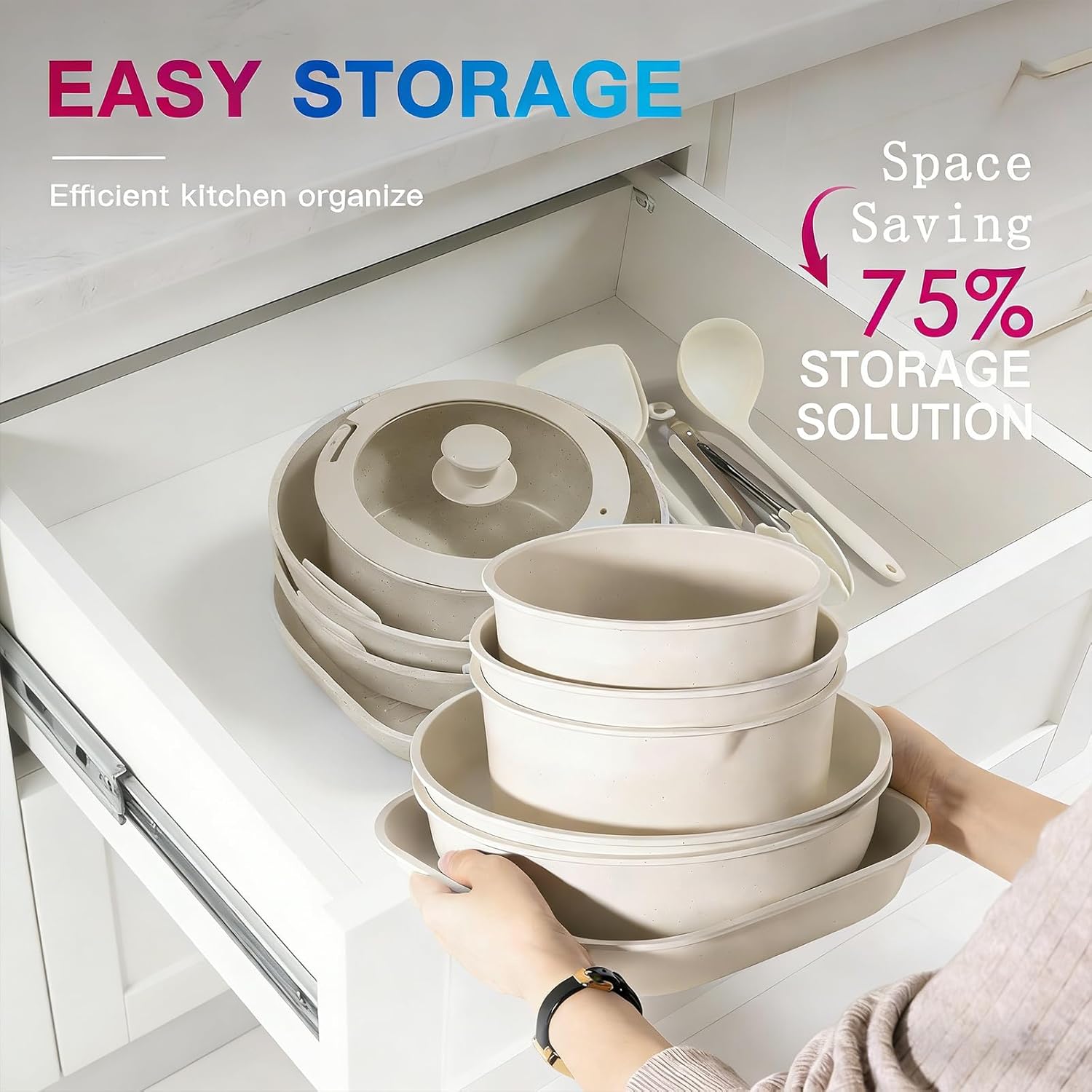 | Included Components | 8“ fry pan, 9.5” fry pan, 2.5-qt saucepan with lid, 5-qt sauté pan with lid, 5-qt stockpot with lid, 5*pan protectors, silicone mat, and Slotted & Solid Spoons, Slotted Spatula, Spaghetti Spoon, Ladle |