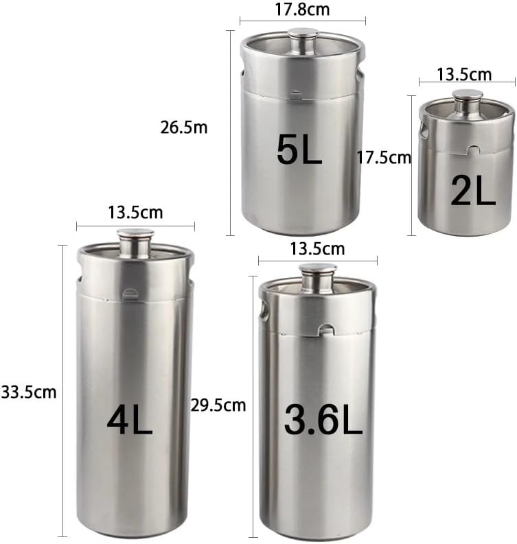 2/3.6/4/5L Stainless Steel Beer Growler,Mini Keg Growler for Craft Beer Dispenser System,Home Brew Beer BrewingProduct Feature:- The thread of keg:Metric thread 33.5*1.5mm- Light and small easy to carry- Double handles for easy to catching and pouring- Food grage stainless steel,hold carbonation pressures longer and keeping beer fresh- Fully rolled top and bottom stainless steel chimes for maximum protection against heavy impact and buckling- Also ideal for fermenting, kegging, storing, and dispensing kombucha or cold brew coffeeBeer Growler Keg ,extremely small, this keg is a must for all home brewers.Portable and easy to carry this will be your go to keg for sharing your homebrew at parties, tailgating or anywhere you want to enjoy your home brew.Easy Clean Instruction:Fill in the warm water with mild soapClean with soft brush or spongeWash with clean waterDry it with lid openPackage includes:1* Beer keg==========Product Type : KegsMaterial : Stainless steelOrigin : Mainland ChinaName : Stainless Steel Mini Keg GrowlerType : Mini Keg GrowlerMaterial : Stainless SteelName 1 : Keg style GrowlerModel Number : Stainless Steel Beer GrowlerFit for : Homebrew keggingStatus : Mini Keg Style GrowlerNumber : Homebrew beer kegSize : 2L/3.6L/4L/5L for you choiceThe thread of keg : Metric thread 33.5*1.5mm