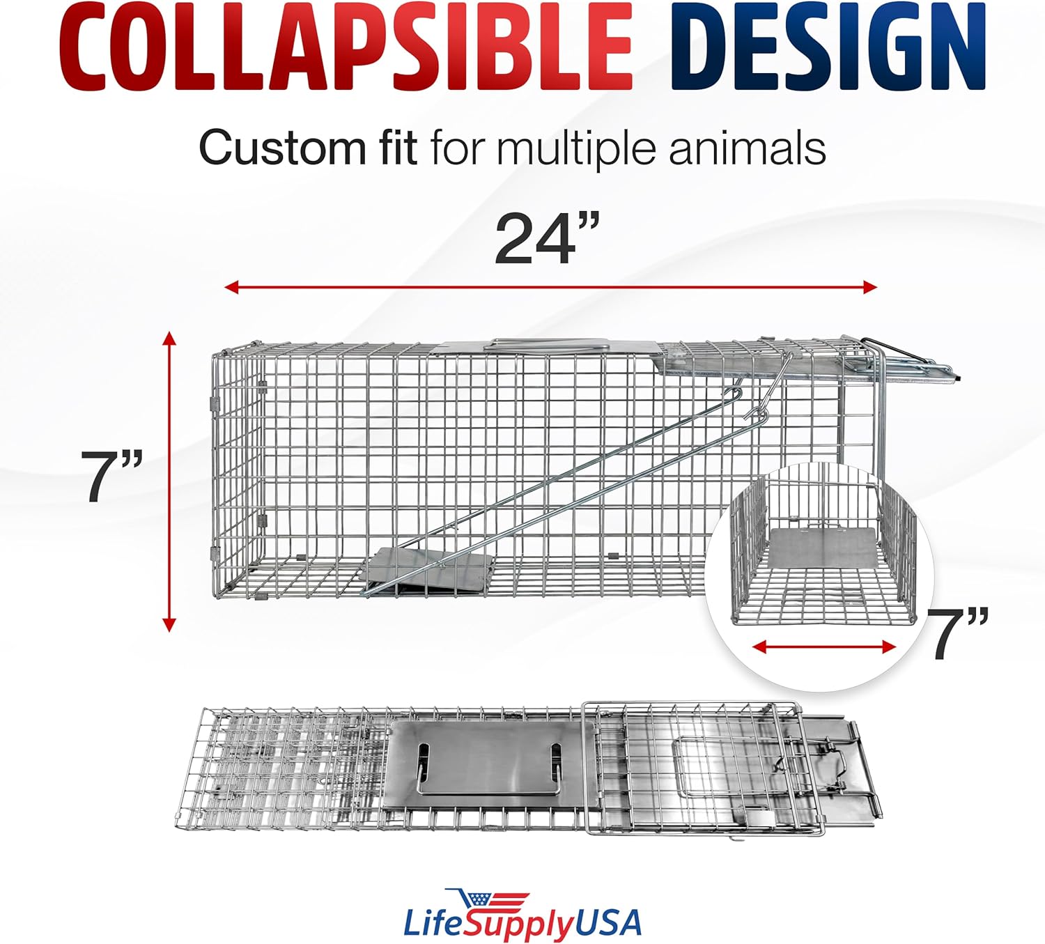 24" Humane Cat Trap for Stray Cats, Collapsible Live Animal Cage for Feral Kittens, Possum, Raccoon, Rabbit, Armadillo Trap Catch and Release by LifeSupplyUSA