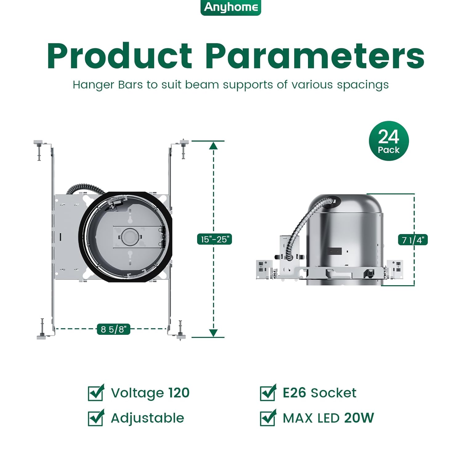 | Included Components | 6 Inch Recessed Lighting Housing Can*24 Pack |