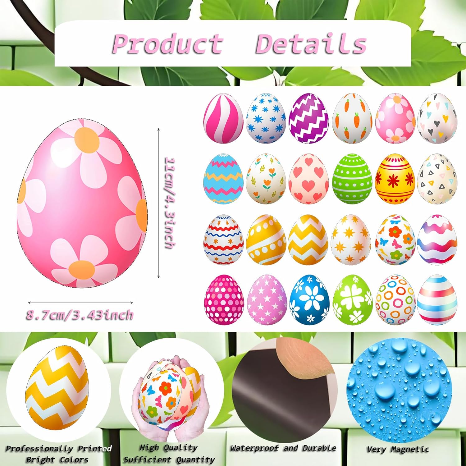 Product Features:Sufficient quantityBright colorsWaterproof and durableStrong magneticWide range of usesPackage:24 pieces of Easter garage door magnetic decorations