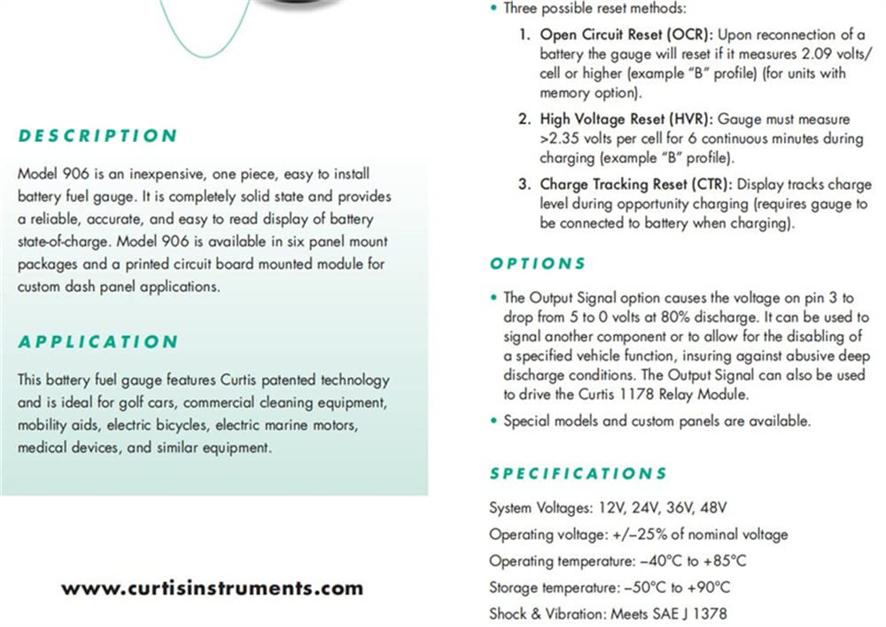 24V 48V Battery Gauge Inidcator Monitor for Curtis 906 906T 906T48HNDAO 906T24BNBAO 24 48 Volt Battery Voltage Meter